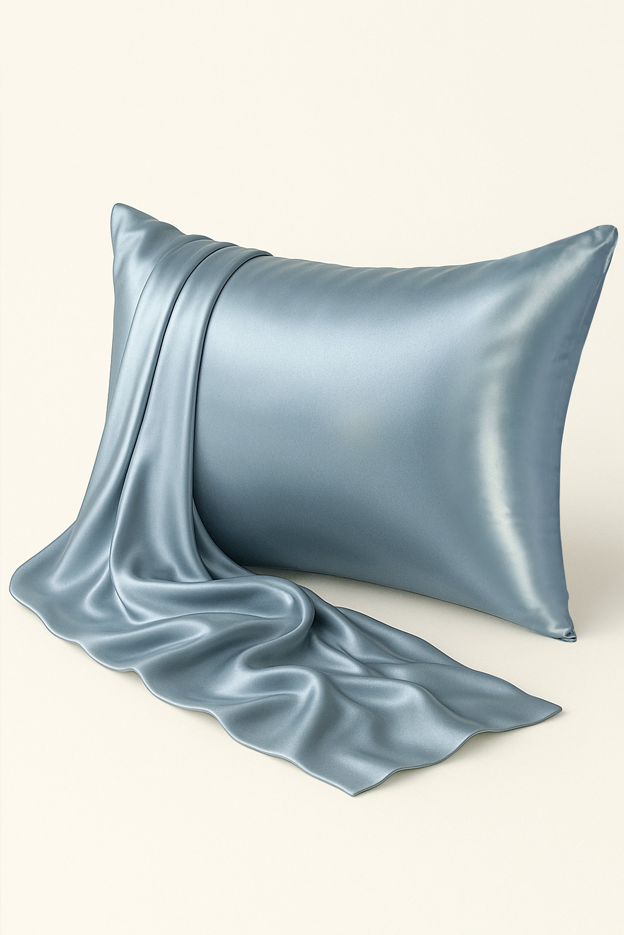 Elevate your bedding with this king size haze blue silk pillowcase, where color meets comfort. The spacious cut and silky-soft surface give you room to stretch and relax, while the elegant envelope closure keeps everything tucked neatly. A modern favorite among those seeking a silk pillowcase for hair and skin, especially in dry or sensitive climates.