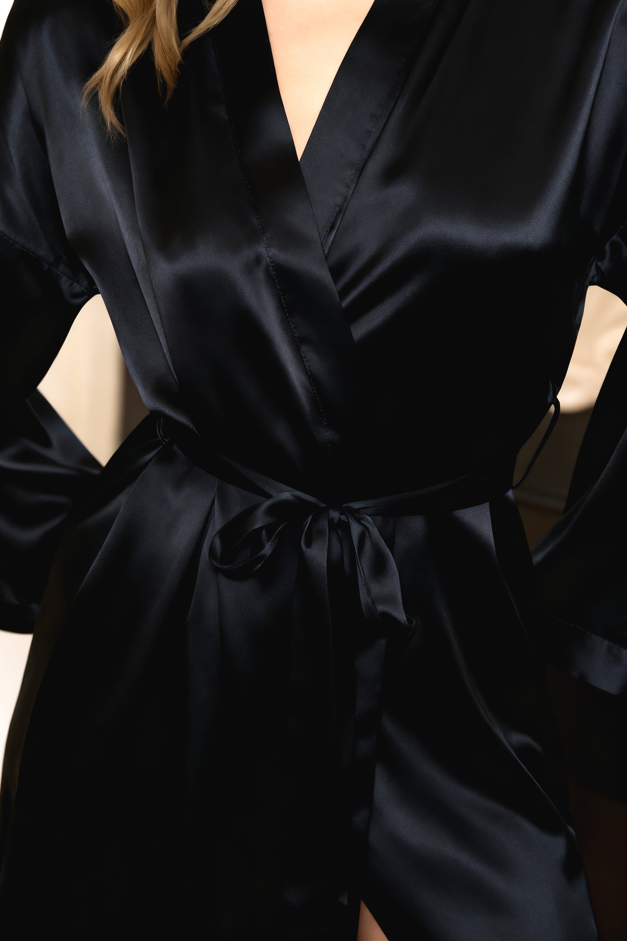 fake-image Black Short Silk Kimono Robe - Mulberry Silk Women’s Loungewear, Bridal & Luxury Gift – Jasmisilk
