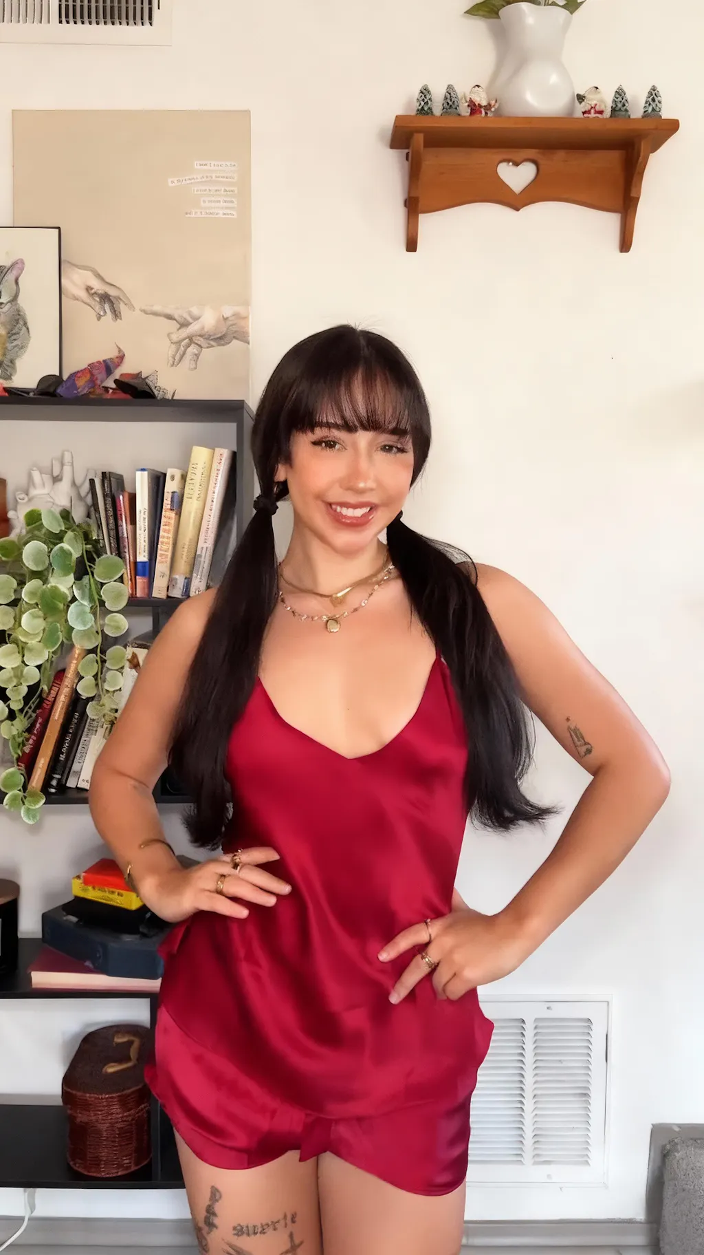 fake-image Silk Camisole Pajama Set & Eye Mask Gift Set | Burgundy Red — Jasmisilk