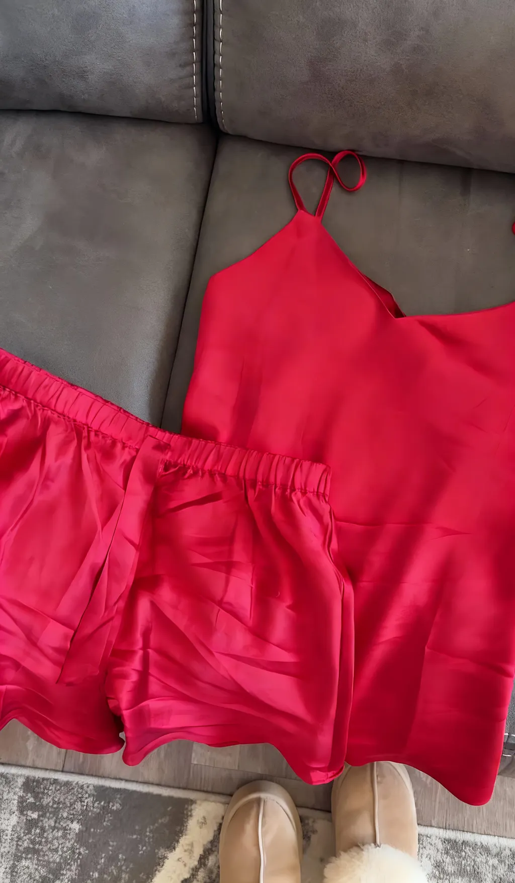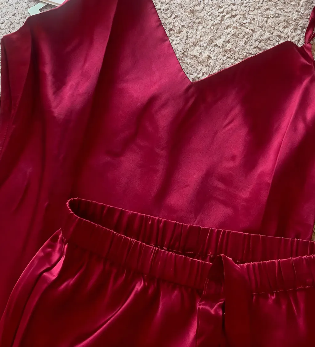 Luxury Silk Camisole Pajama Set & Eye Mask – 100% Mulberry Silk Christmas Gift for Her | Burgundy Red