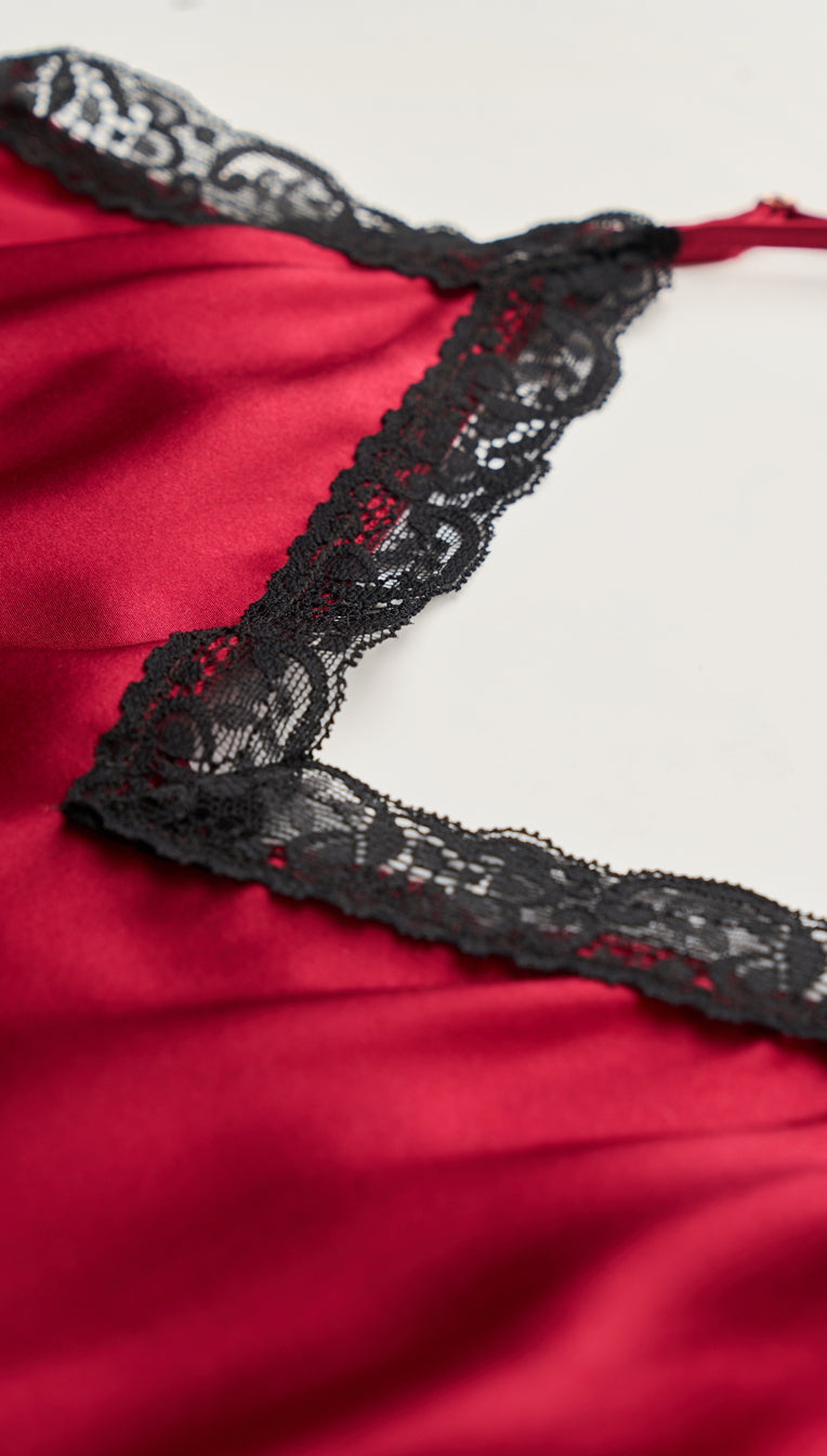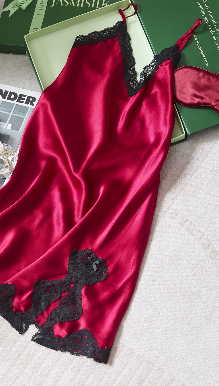Luxury Silk Lace Slip Dress & Eye Mask Gift Set for Women – Burgundy Red