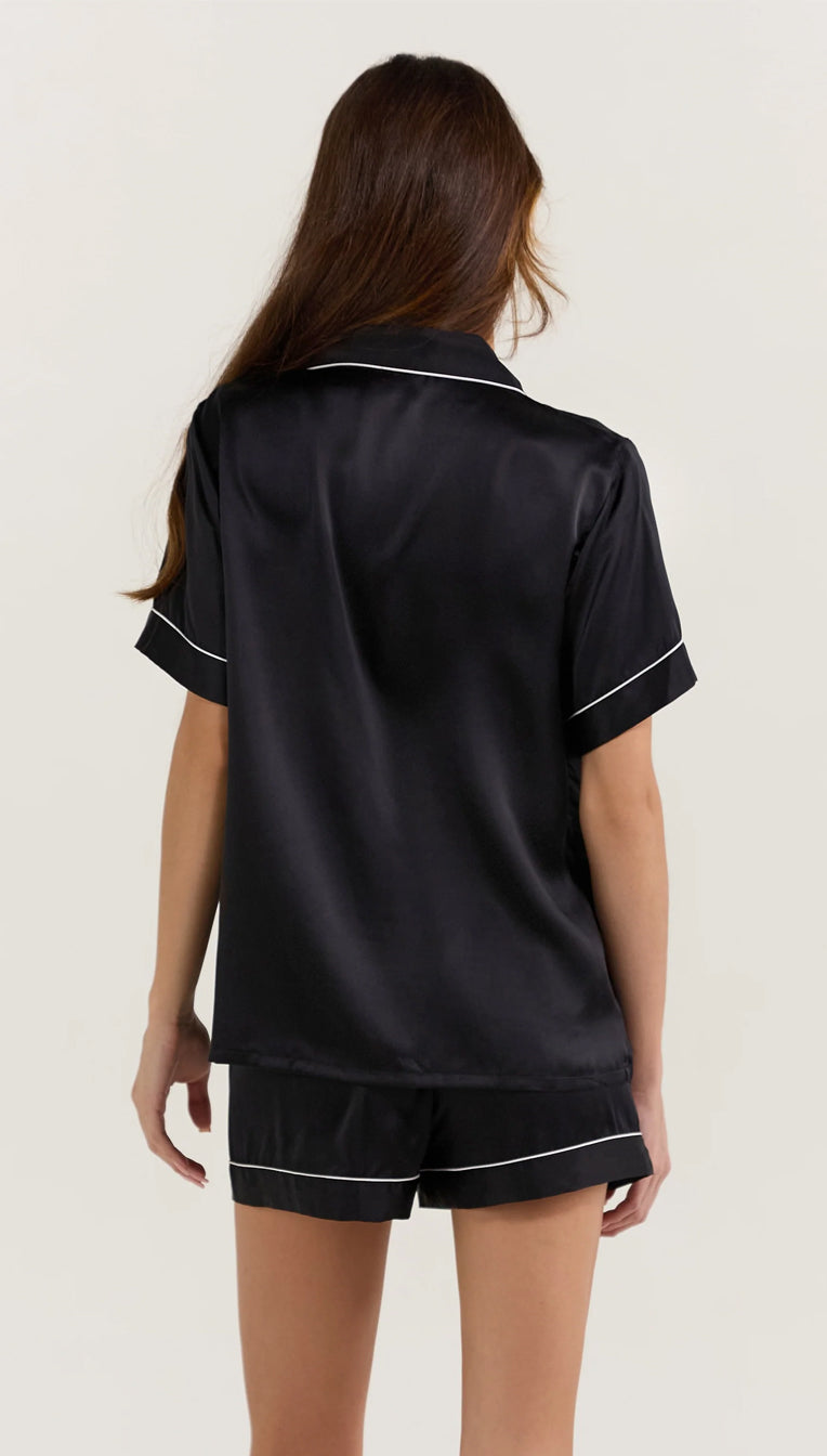 Luxury Silk Short-Sleeve Pajama Set & Eye Mask – 100% Mulberry Silk Gift for Her | Black