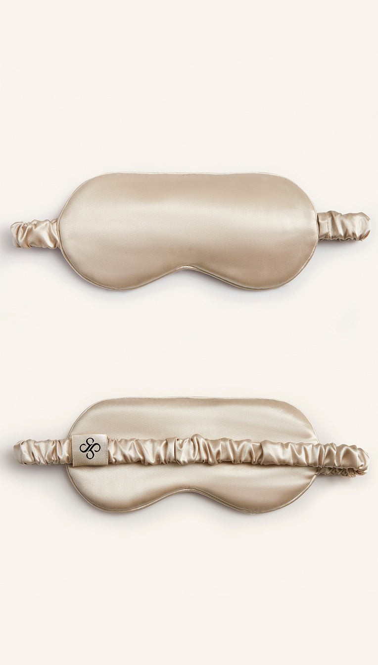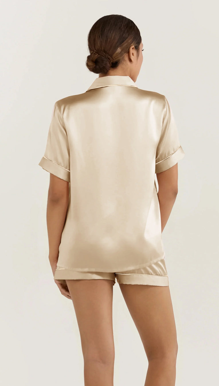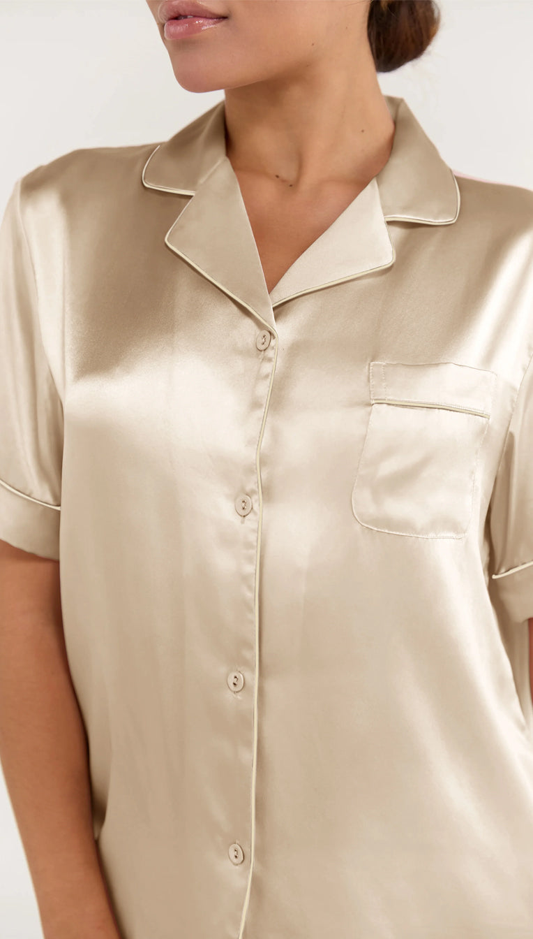 Luxury Silk Short-Sleeve Pajama Set & Eye Mask – 100% Mulberry Silk Gift for Her | Champagne