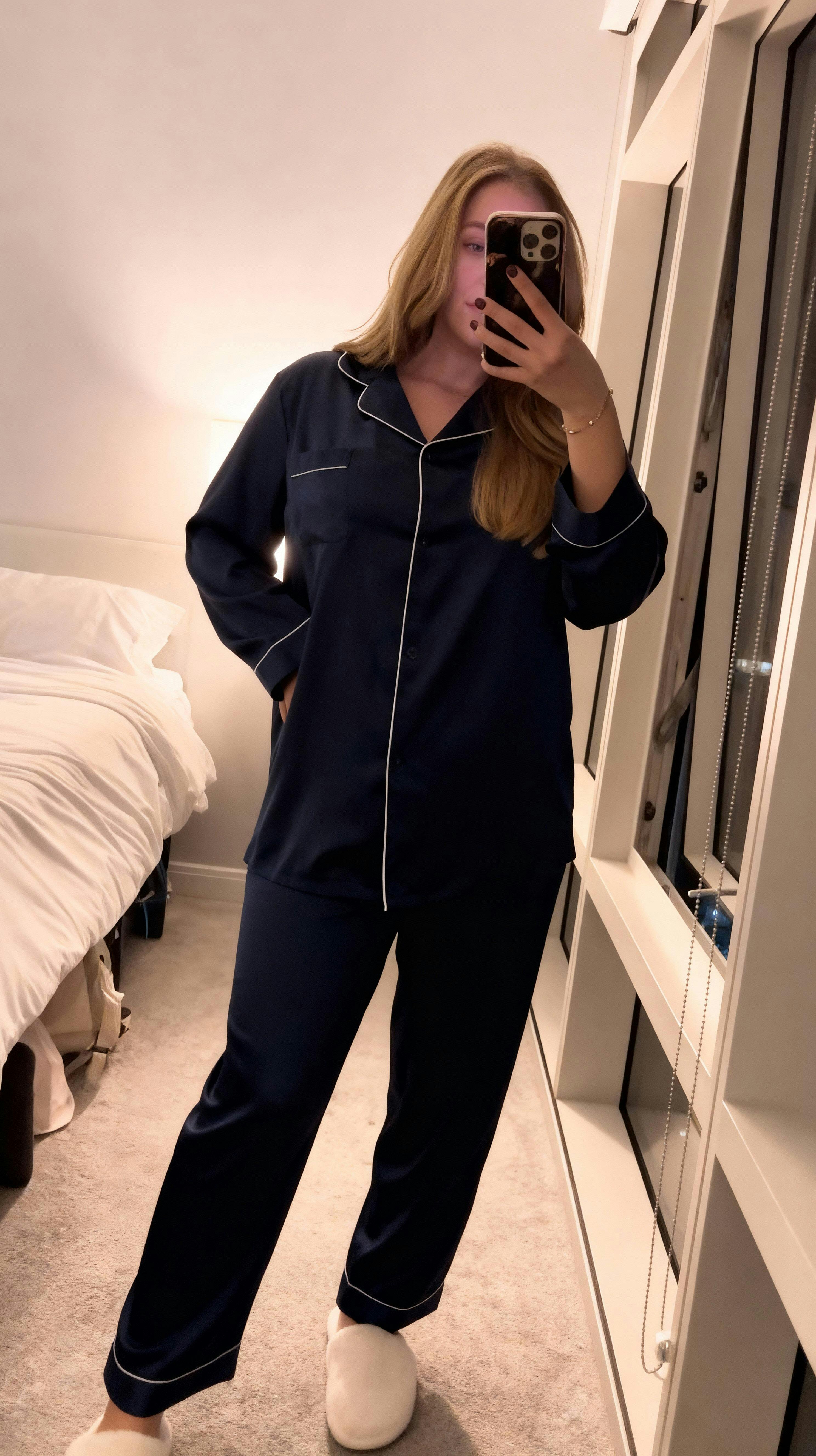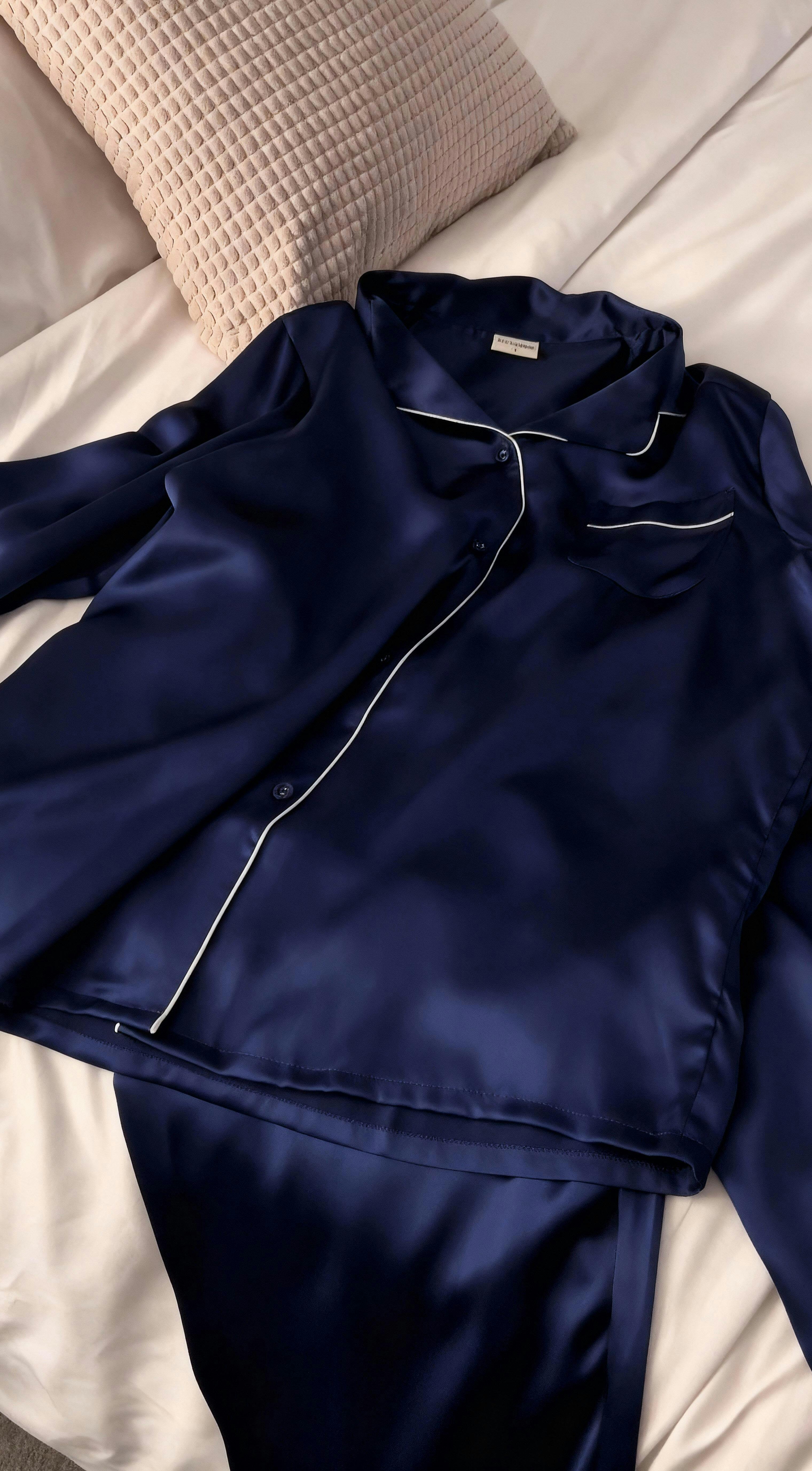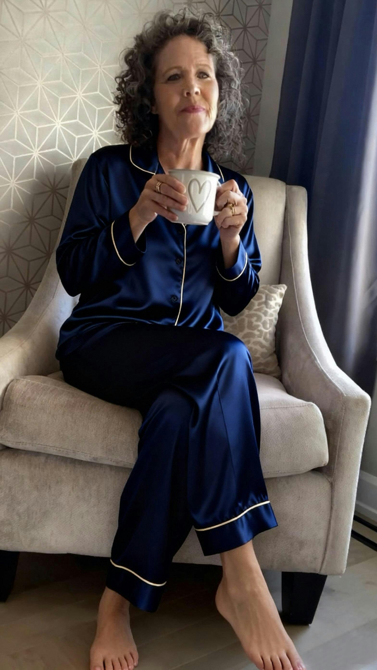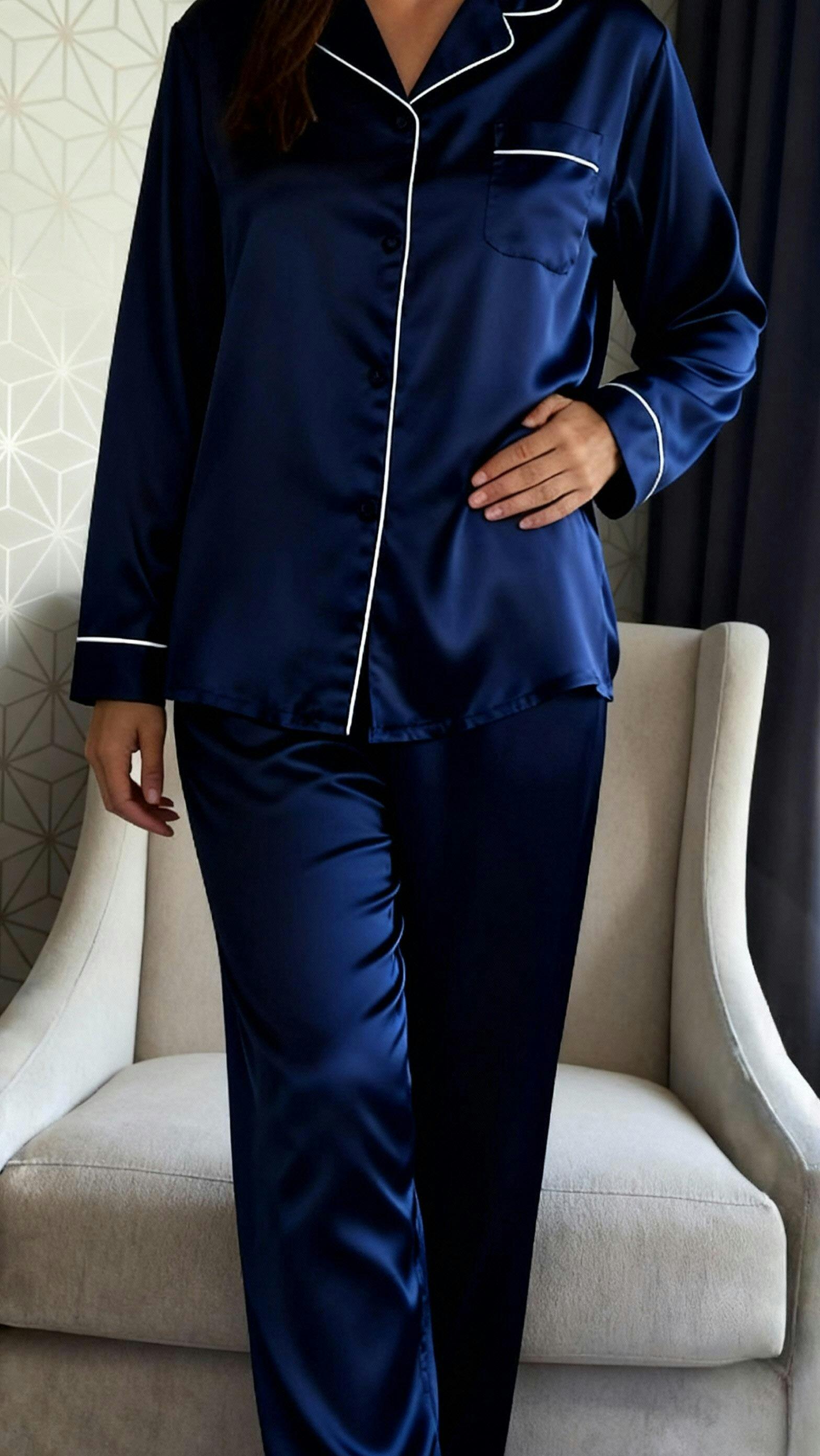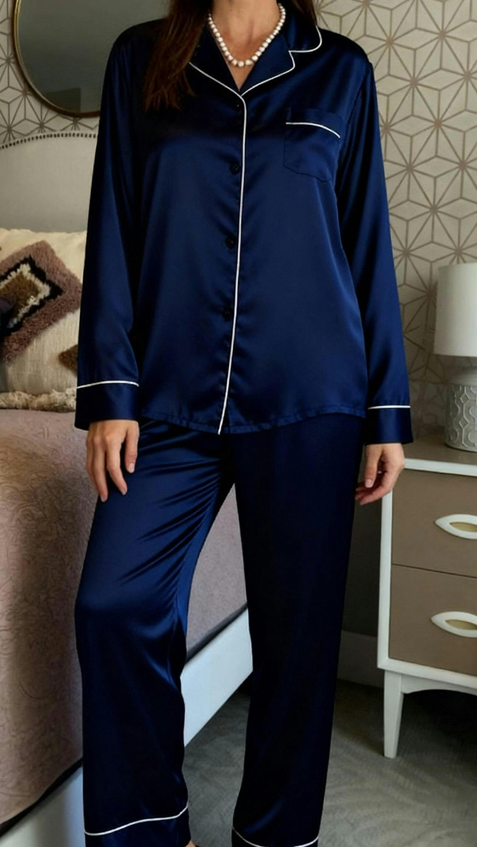 Women’s Long-Sleeve & Pants Silk Pajama In Navy Blue