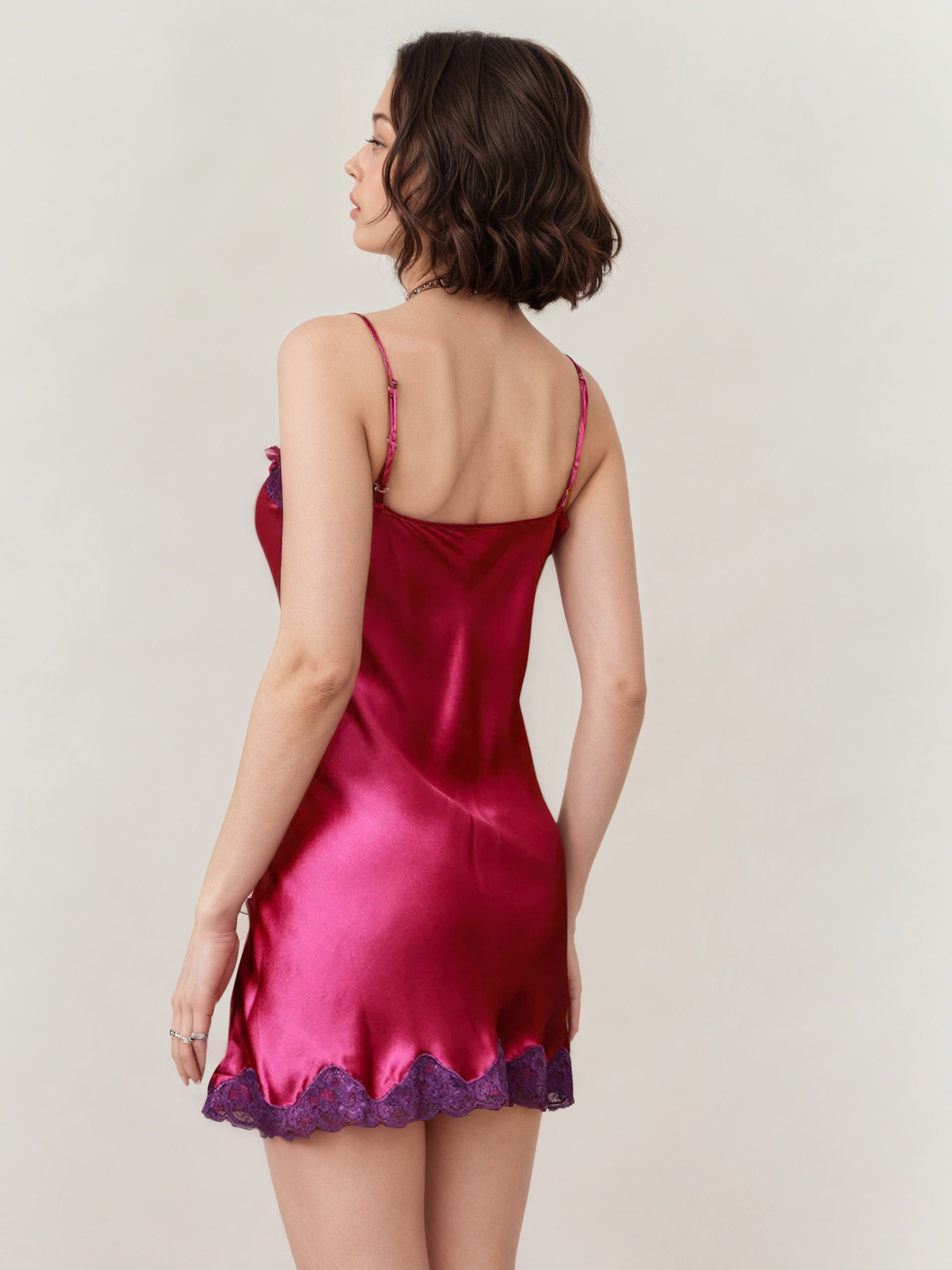 fake-image Pure Silk Lace Trim Chemise Nightgown with Split Hem In Fuchsia – Jasmisilk