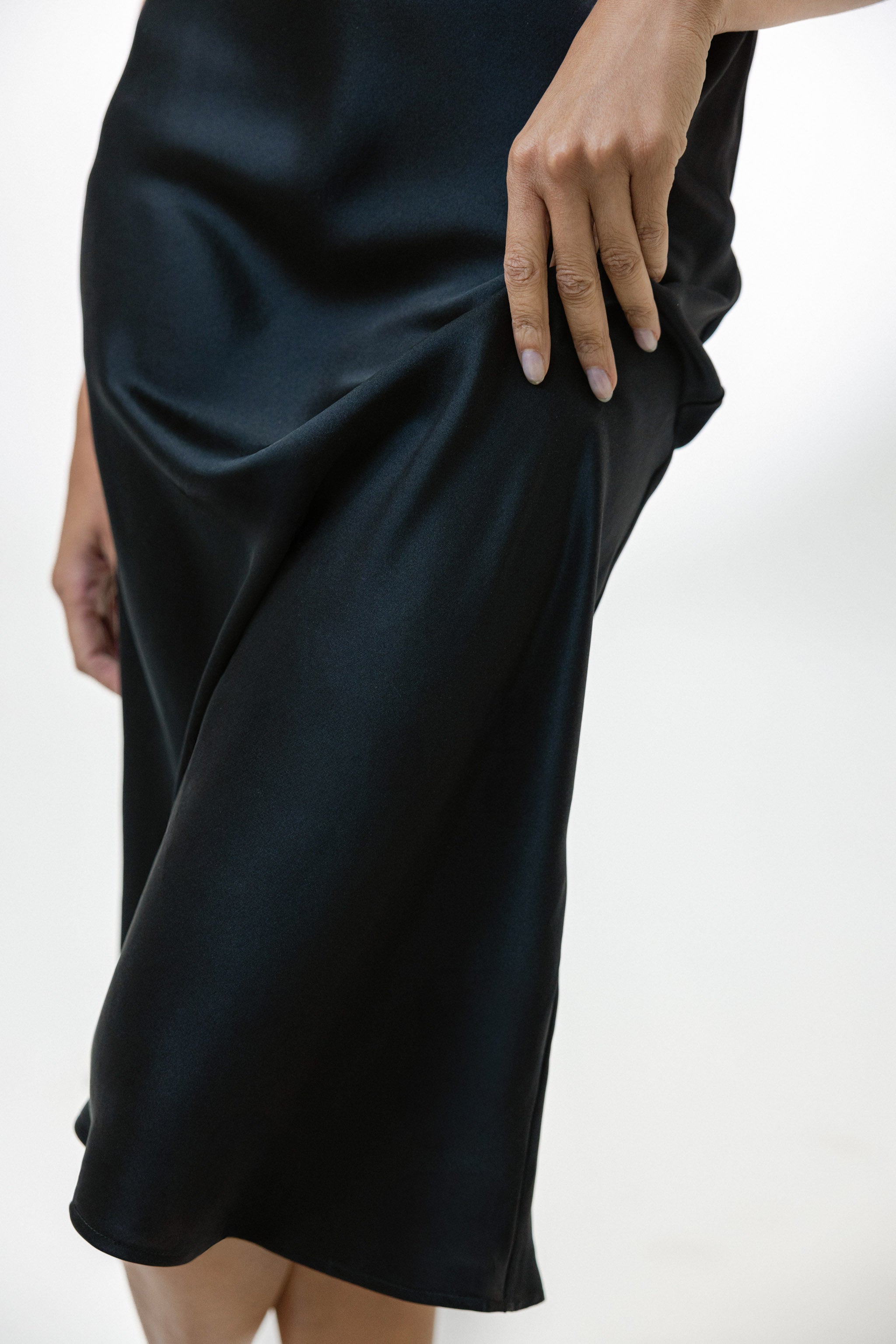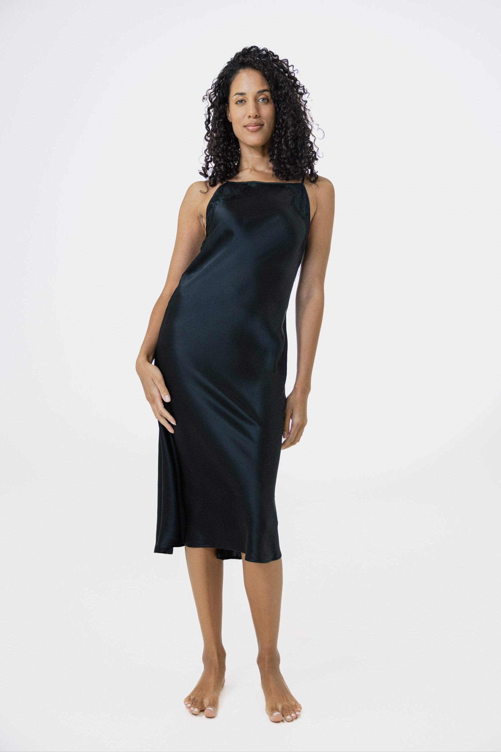 This midi-length slip dress is the epitome of effortless luxury. Made from 100% Mulberry silk with a satin finish, its flattering bias cut drapes beautifully, creating a silhouette that’s both comfortable and elegant. Designed keep you comfortable no matter the season.