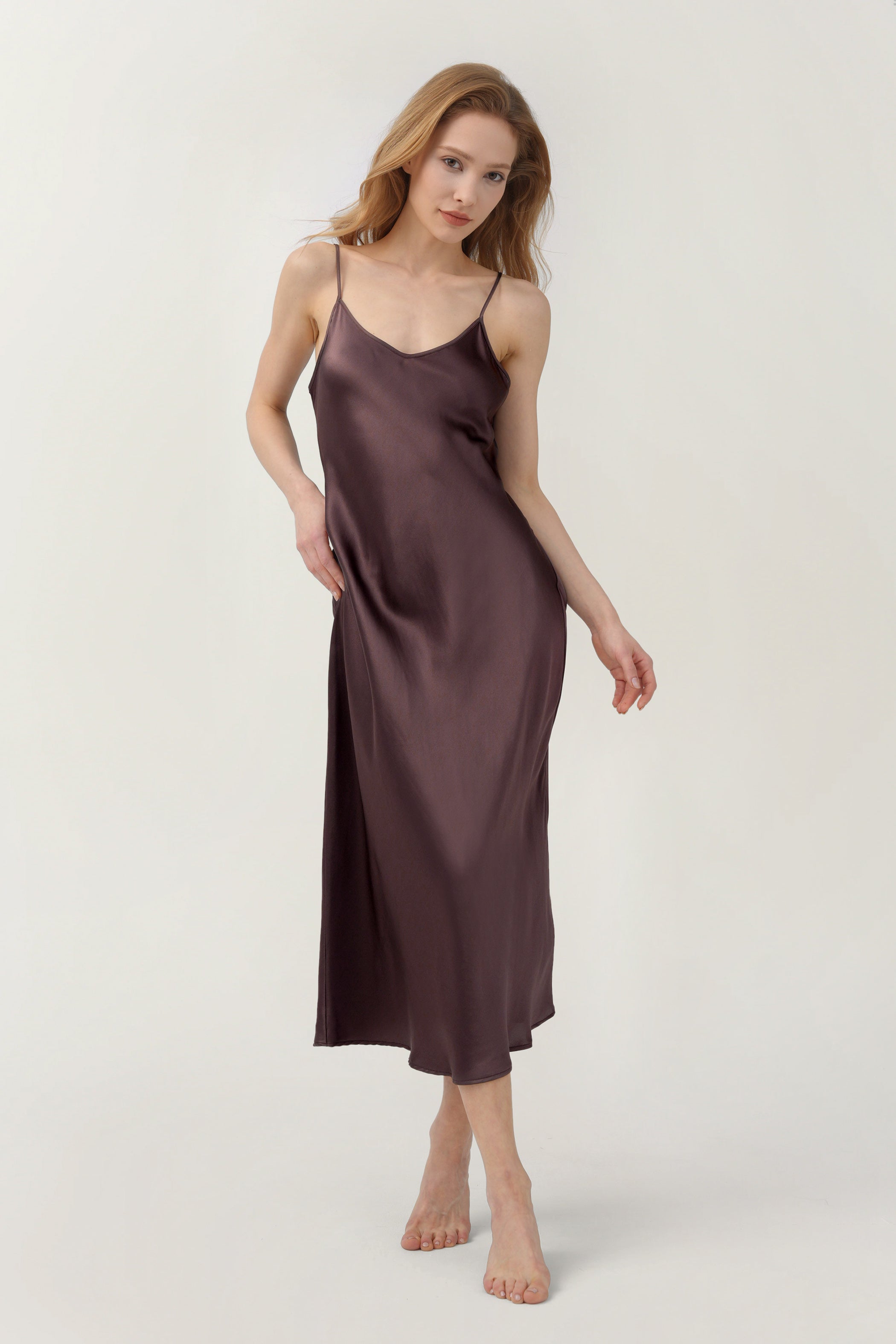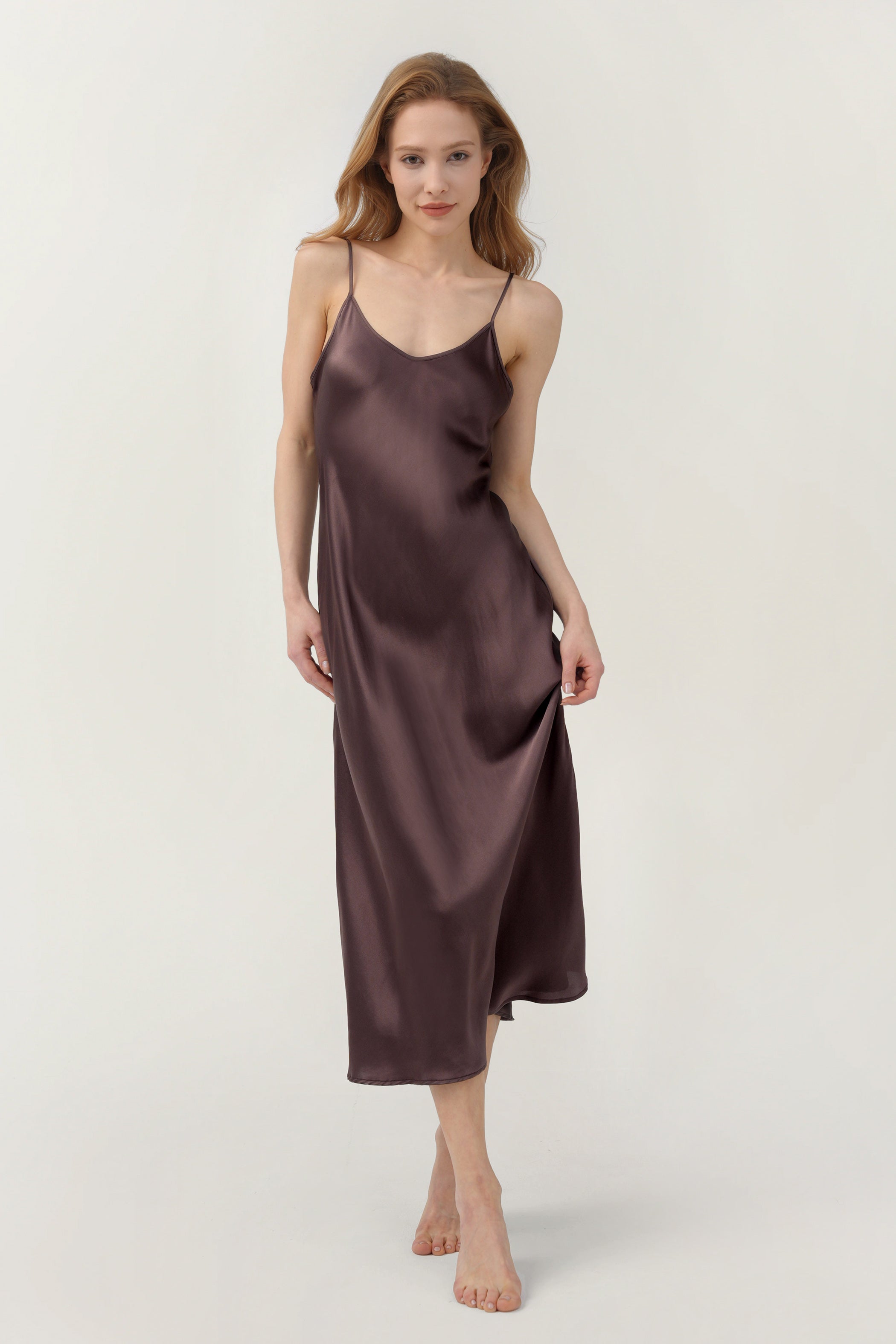 fake-image Pure Silk Spaghetti Strap Long Dress In Coffee – Jasmisilk