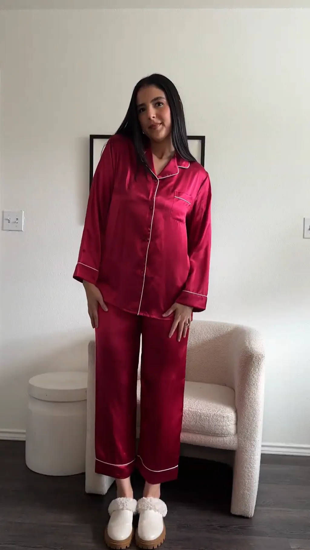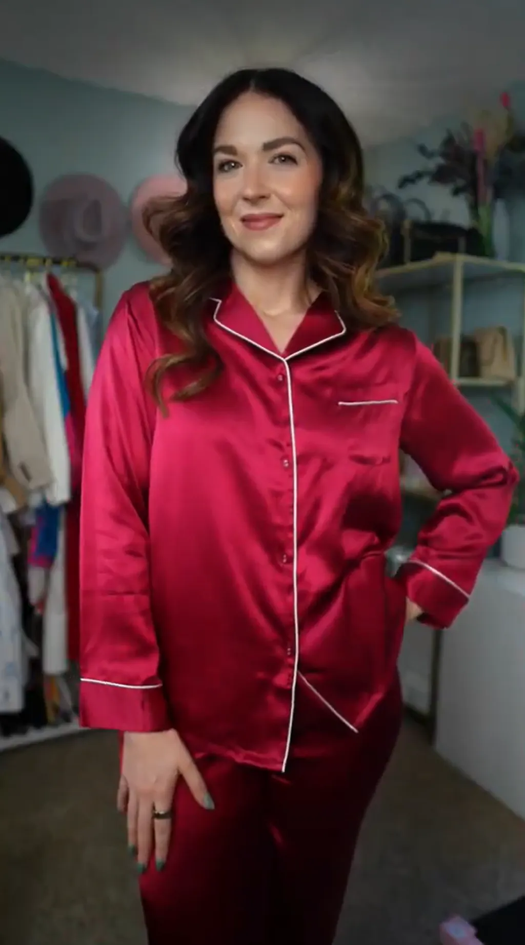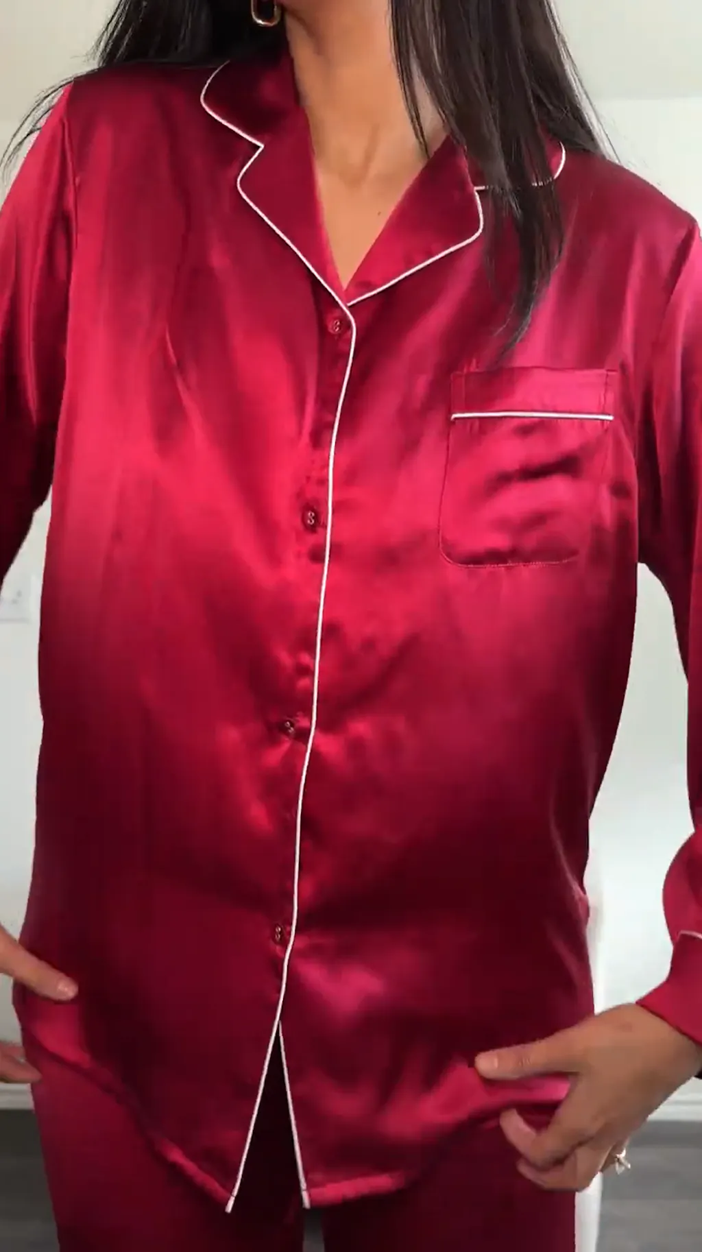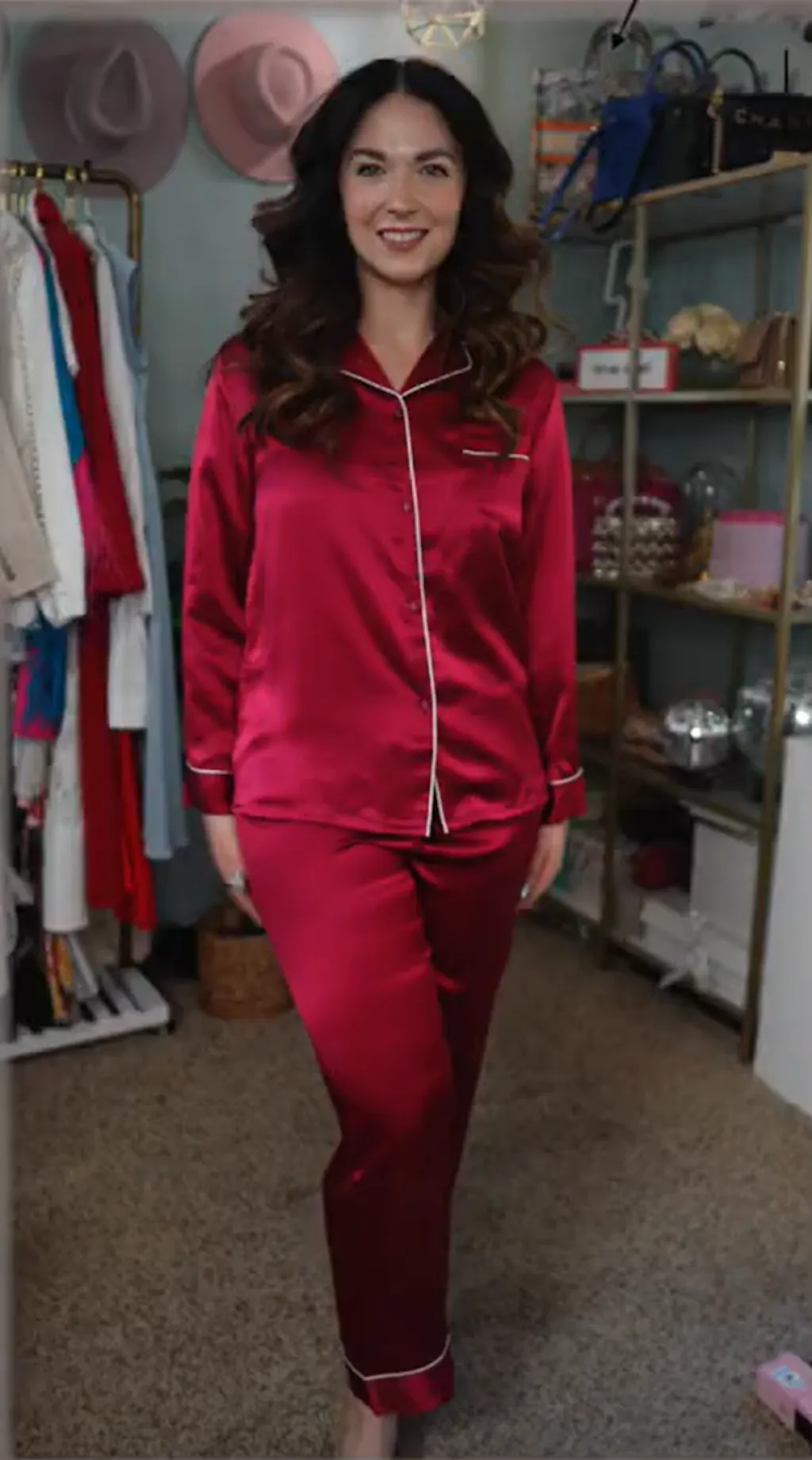 fake-image Women’s Long-Sleeve & Pants Silk Pajama In Burgundy Red – Jasmisilk