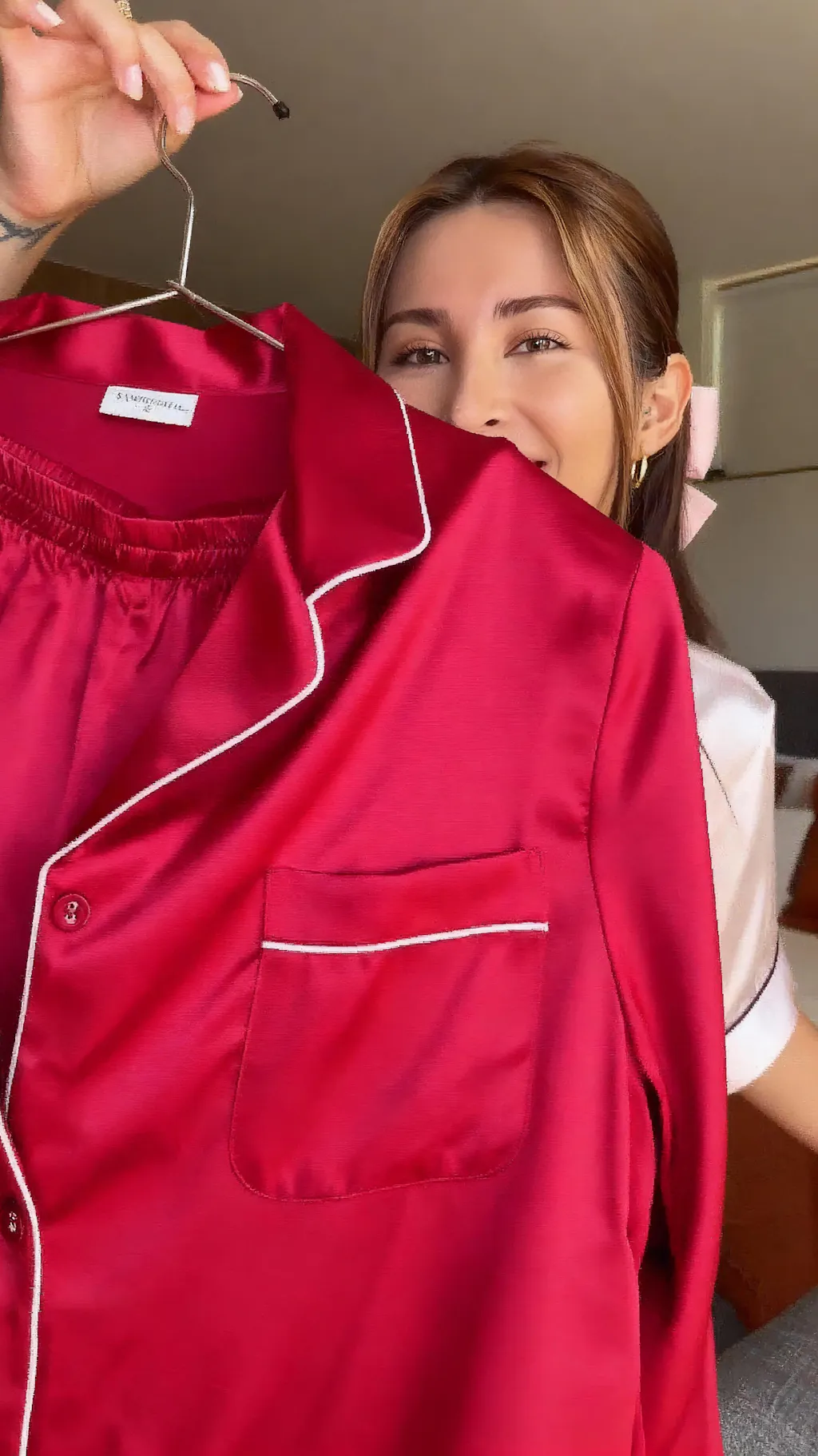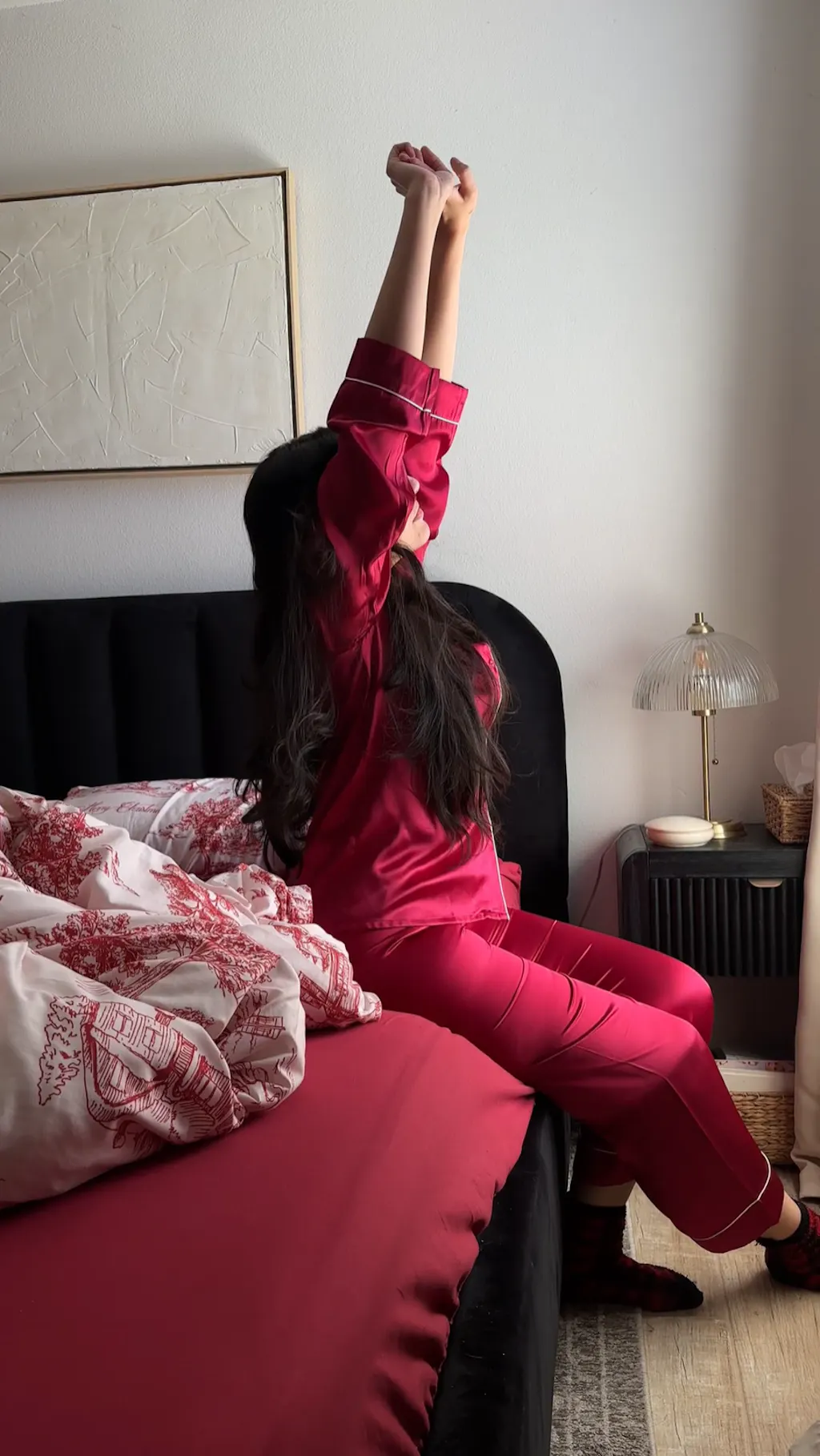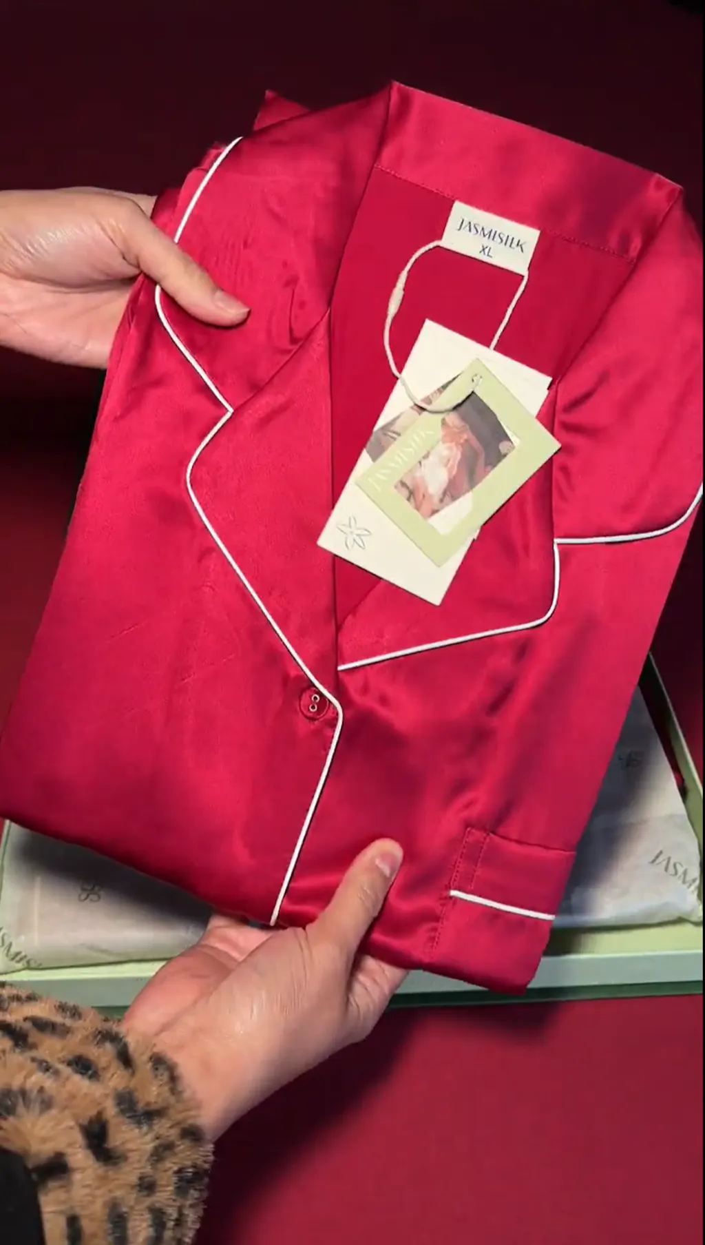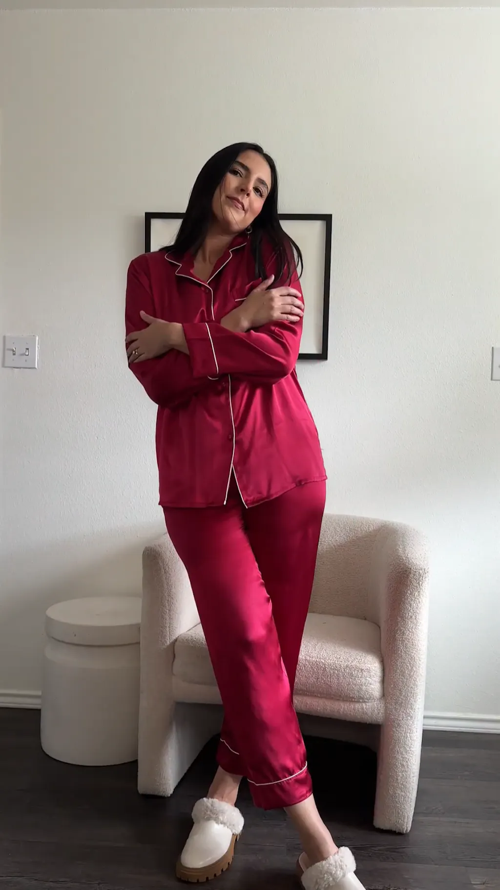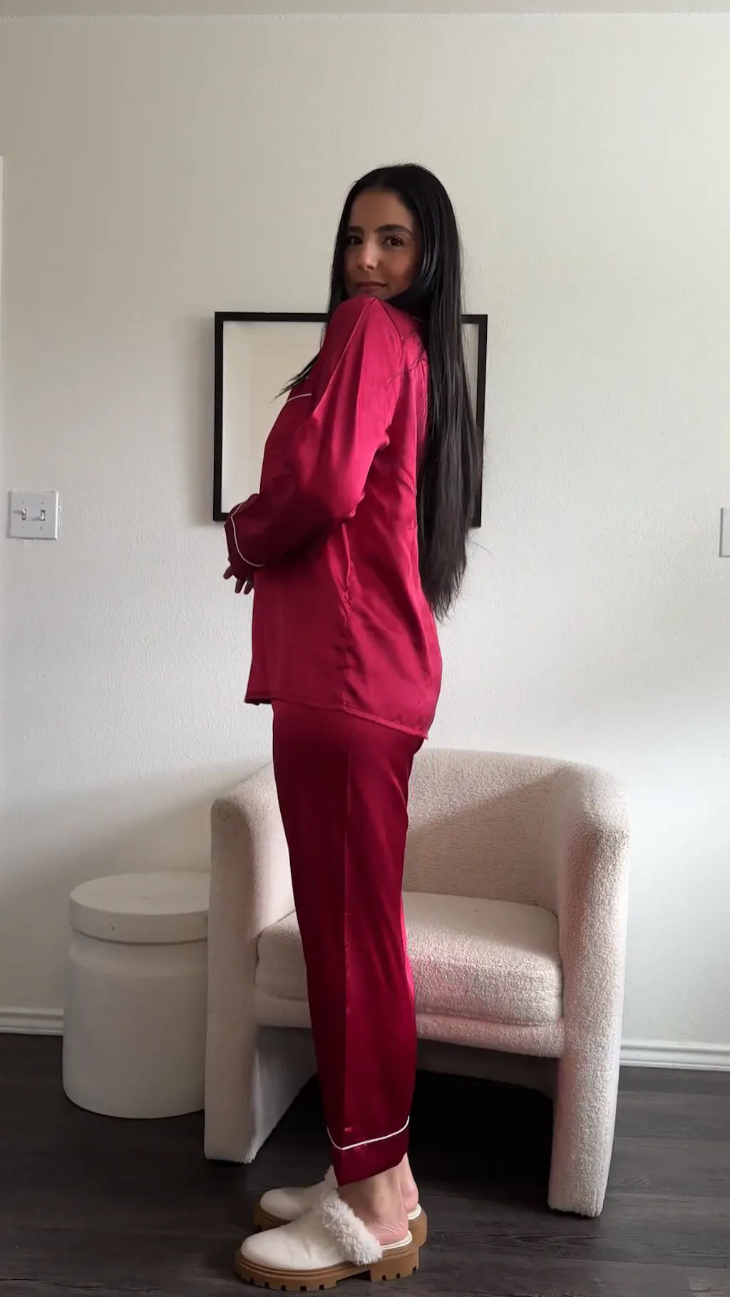 fake-image Women’s Long-Sleeve & Pants Silk Pajama In Burgundy Red – Jasmisilk
