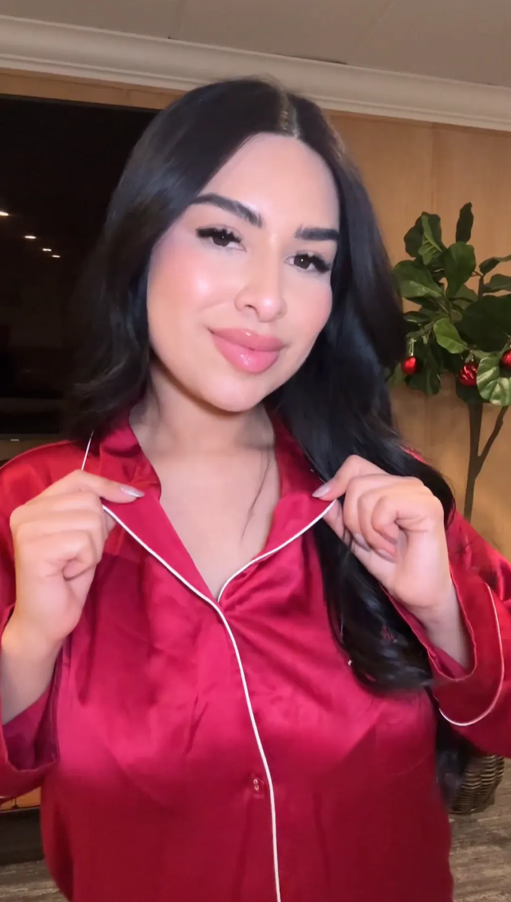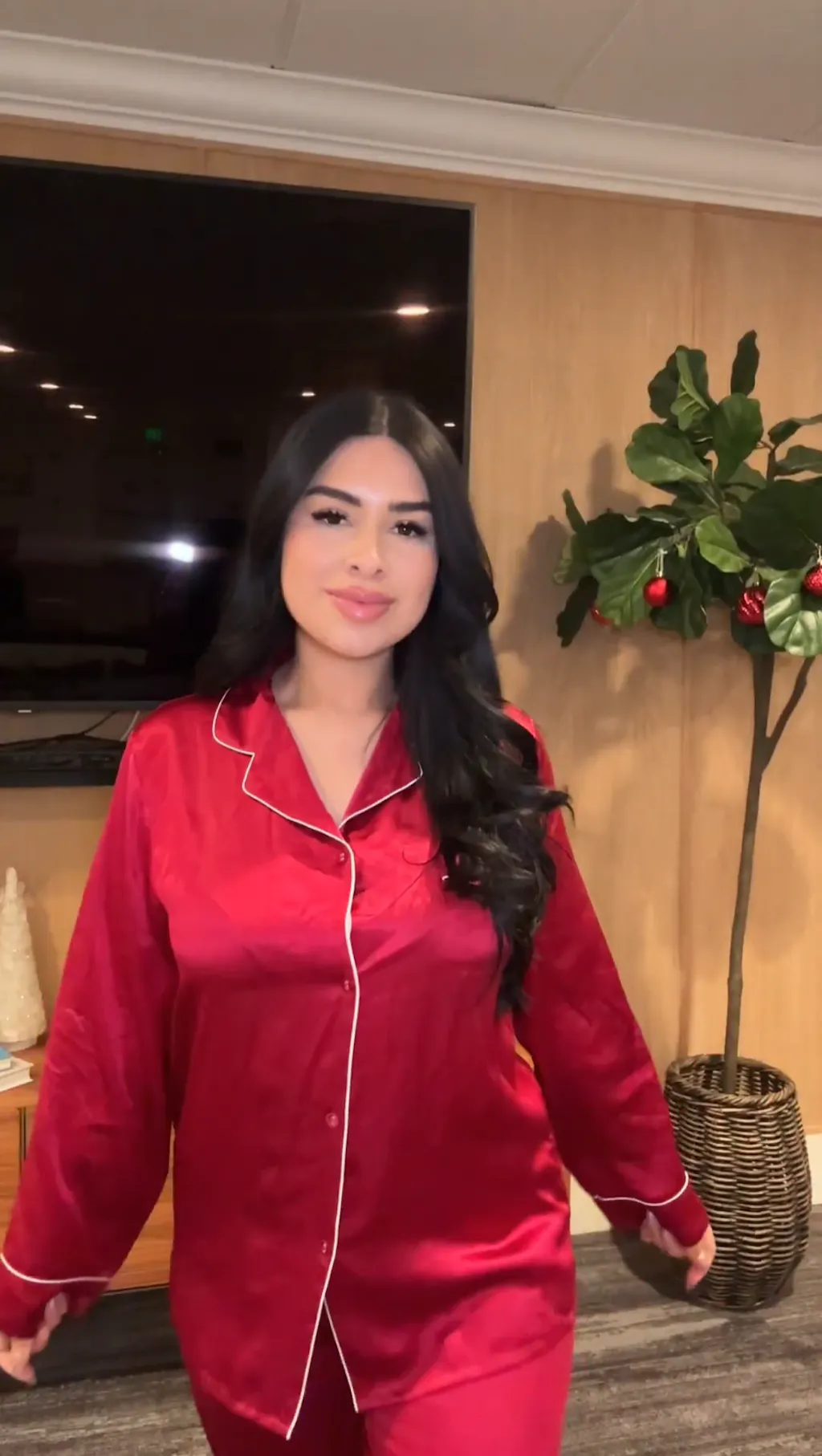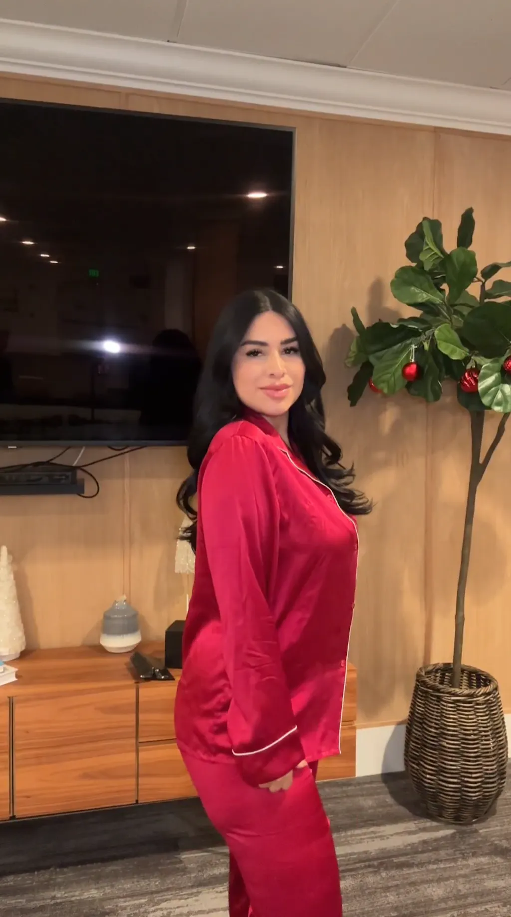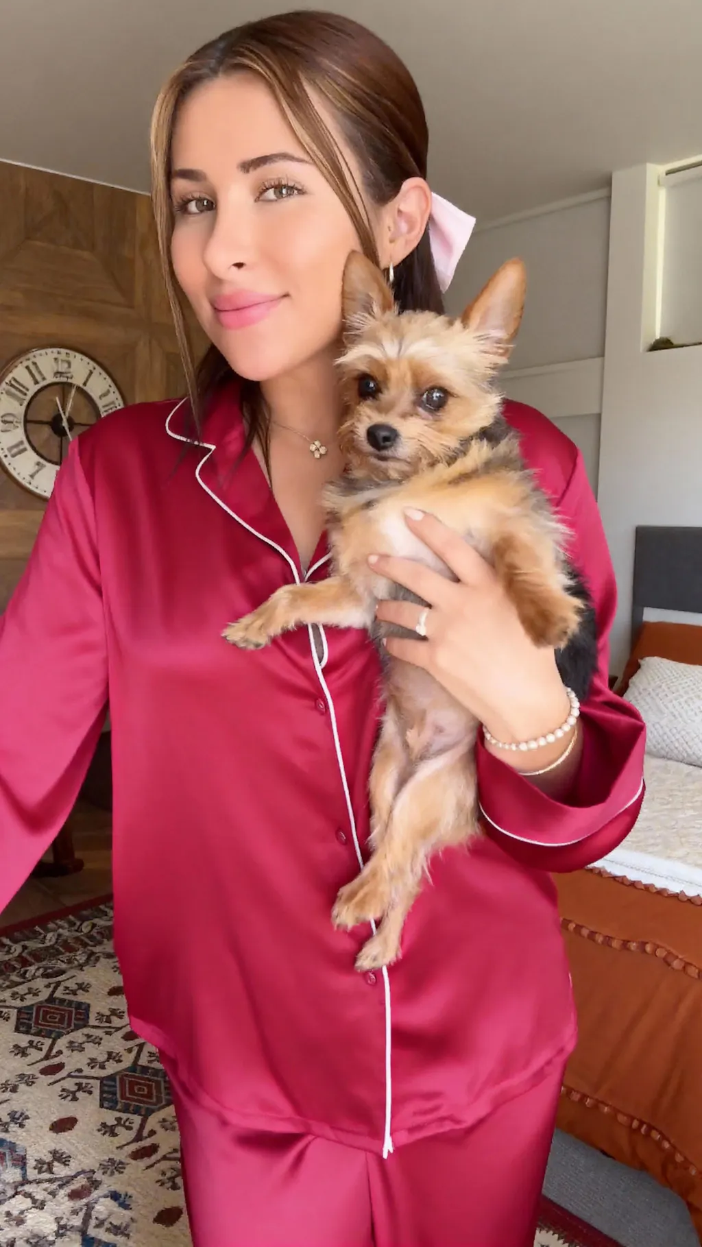 fake-image Women’s Long-Sleeve & Pants Silk Pajama In Burgundy Red – Jasmisilk