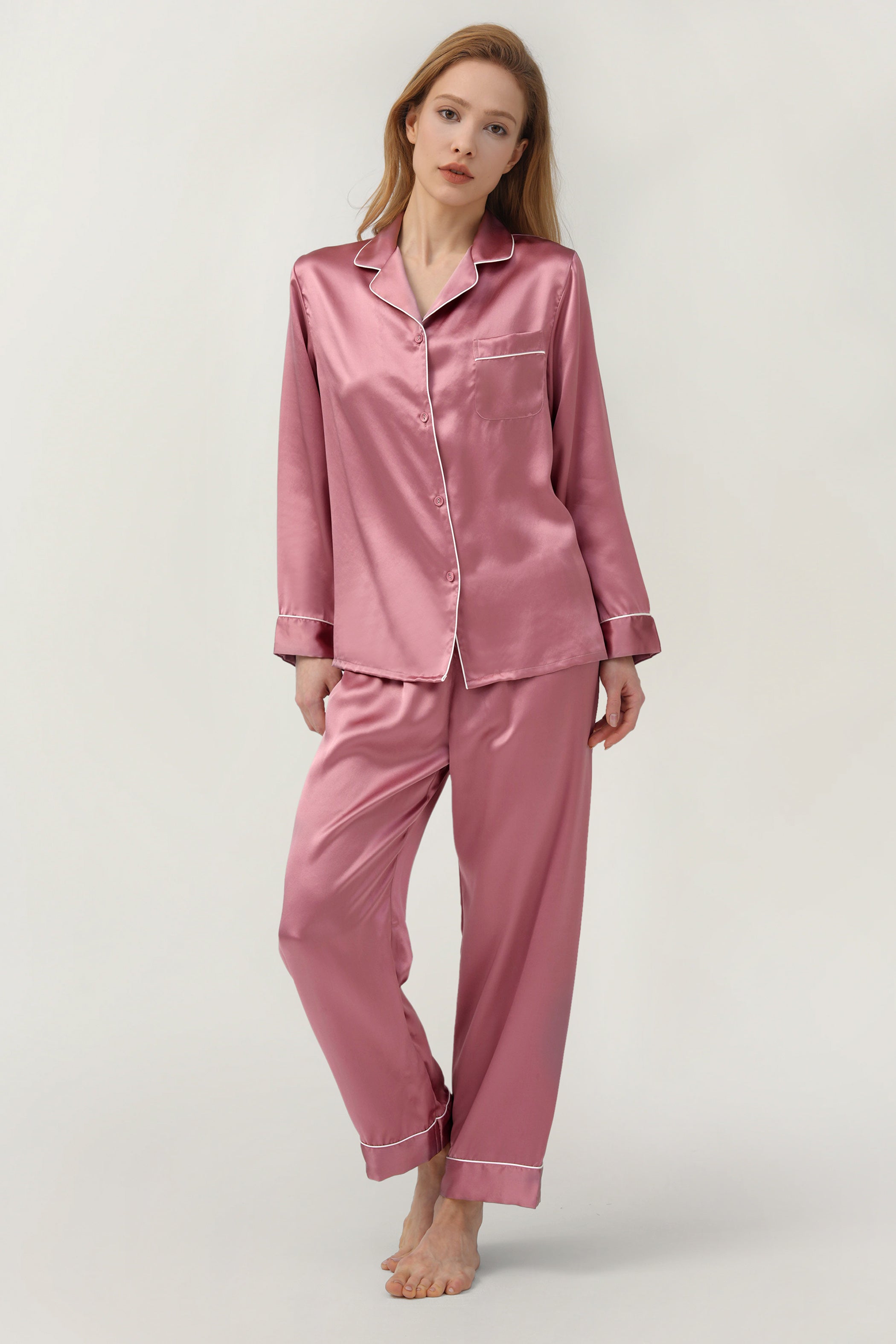 Stay cozy and comfortable with the JasmiSilk Long-Sleeve & Pants Silk Pajama Set. Made from breathable, soft Mulberry silk, this set provides a relaxed fit that keeps you cool and comfortable throughout the night, with just the right amount of coverage for year-round wear.