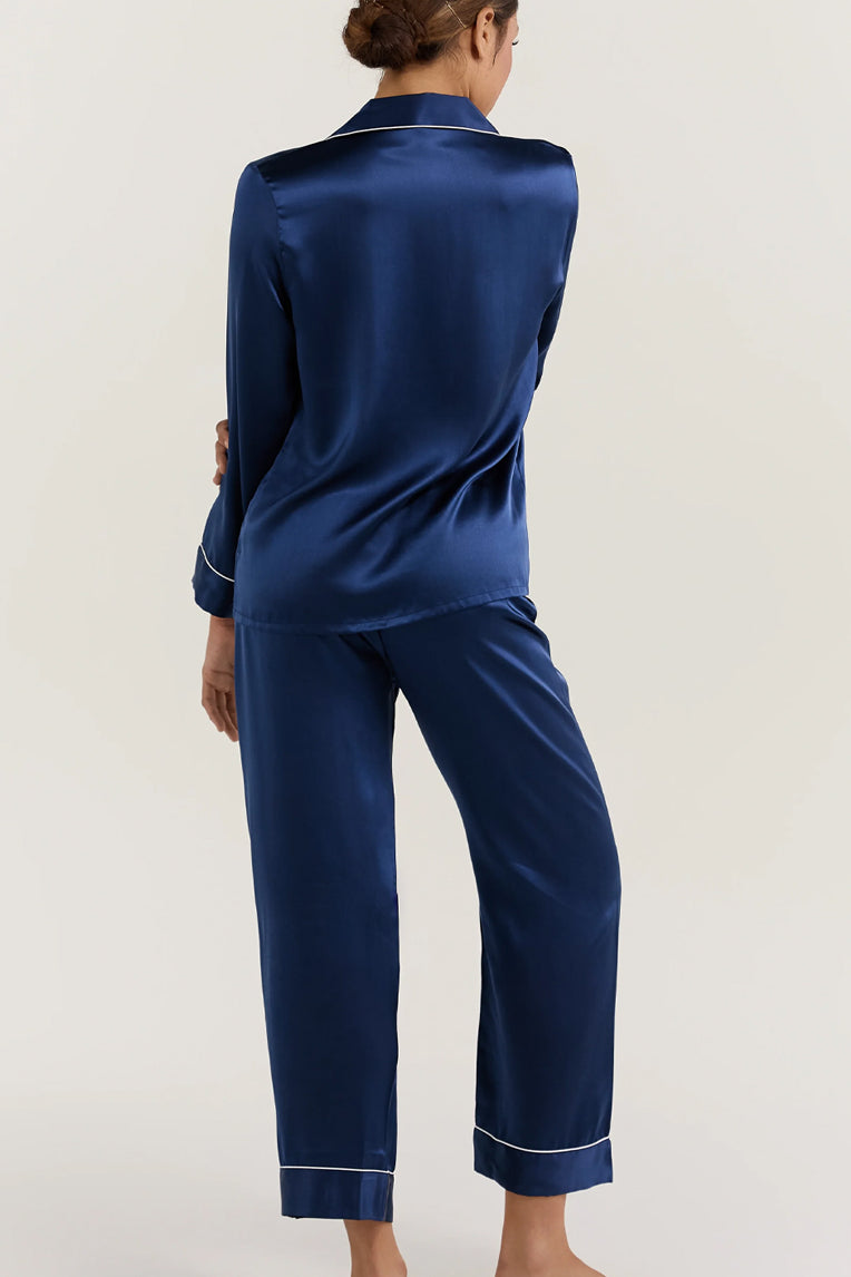 Silk Long-Sleeve Pajama Set & Eye Mask – 100% Mulberry Silk Gift Set for Women | Navy Blue