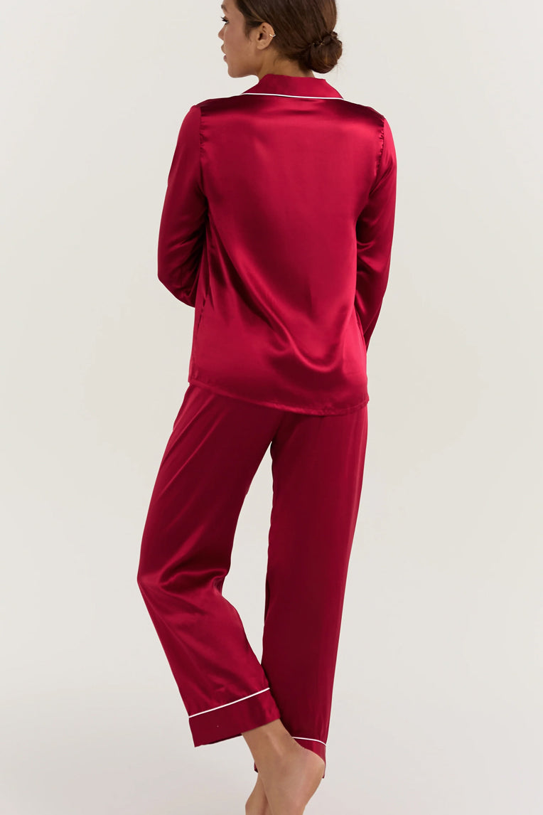 Silk Long-Sleeve Pajama Set & Eye Mask – 100% Mulberry Silk Gift Set for Women | Burgundy Red