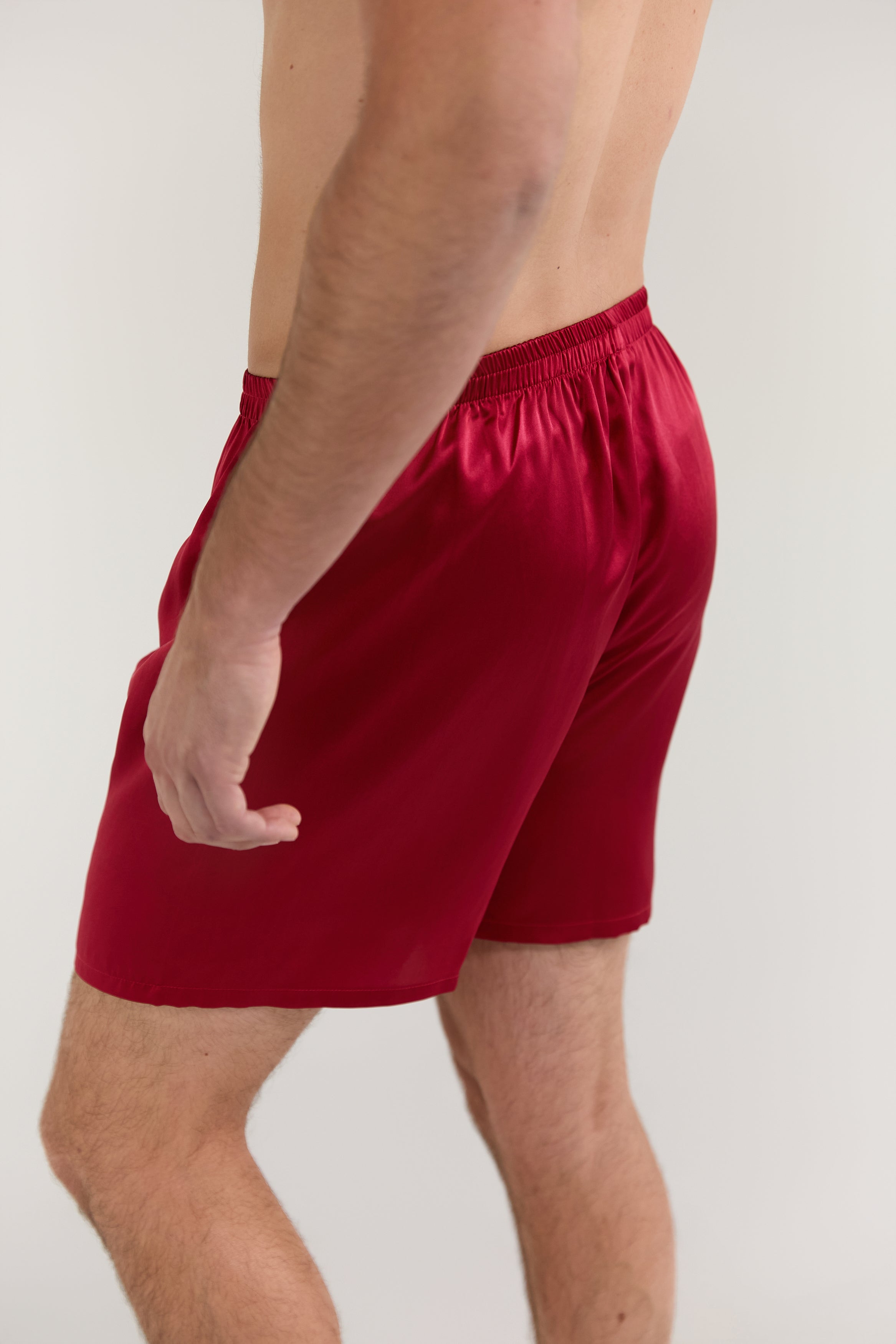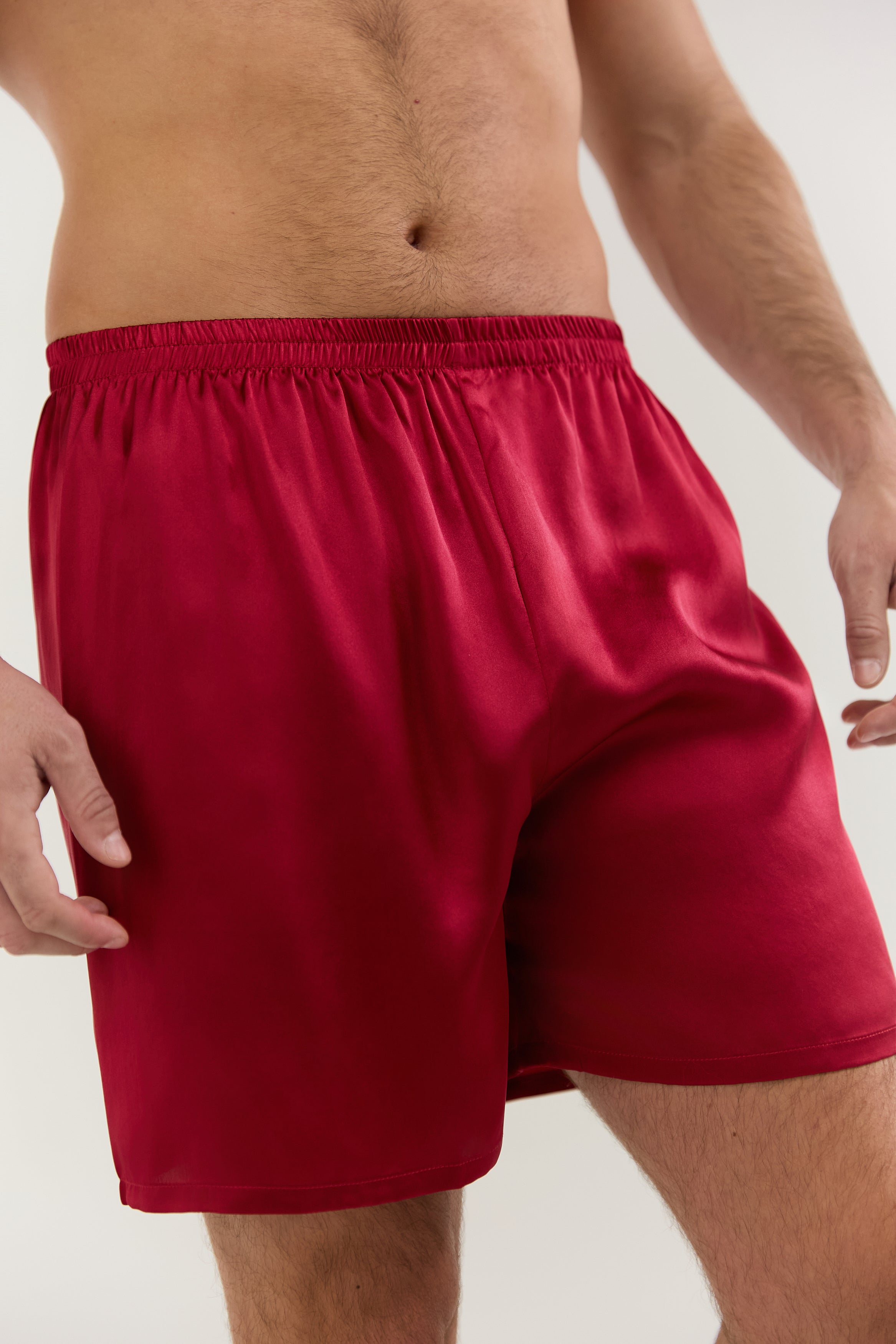 fake-image Men’s Pure Silk Lounge Shorts In Burgundy Red – Jasmisilk