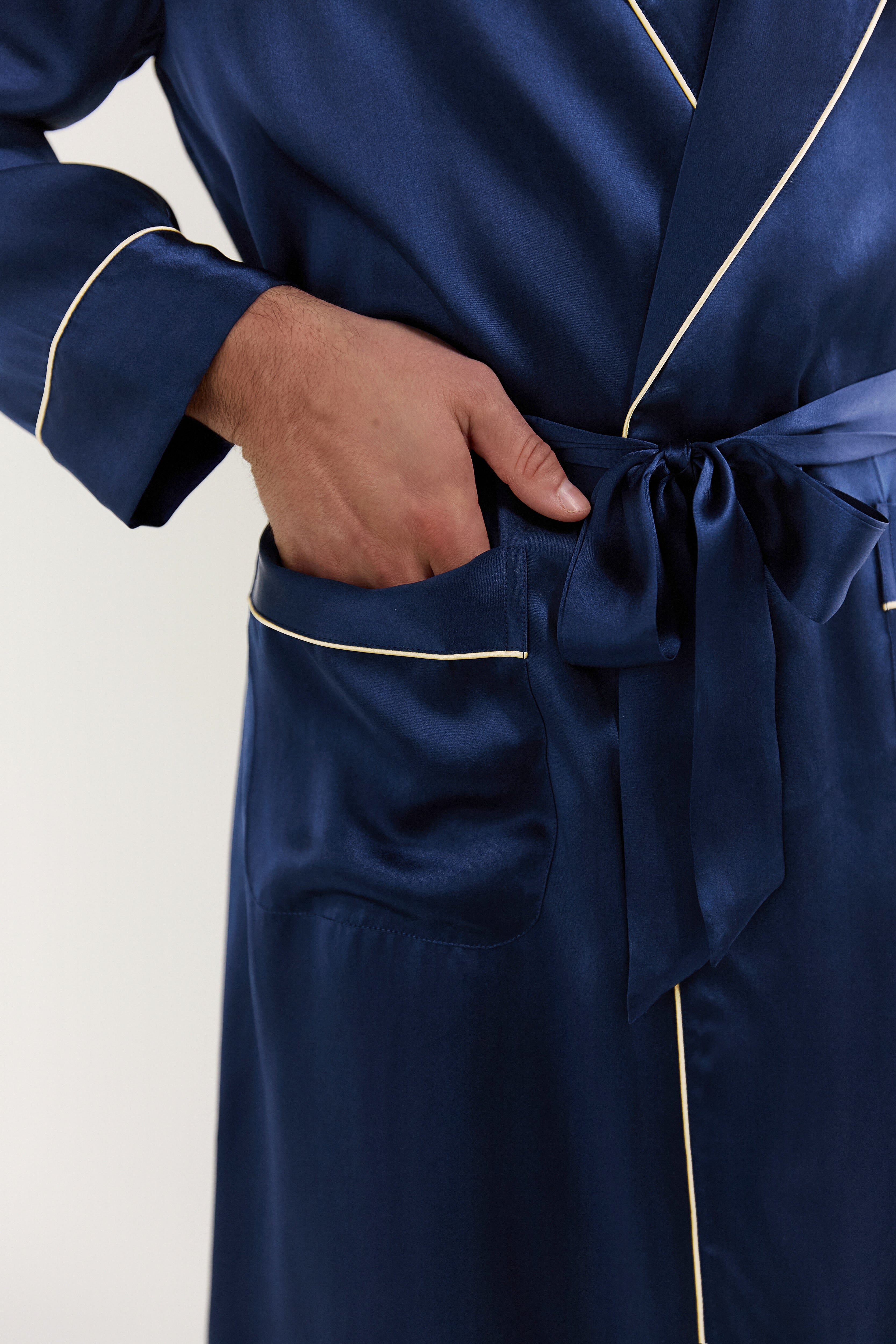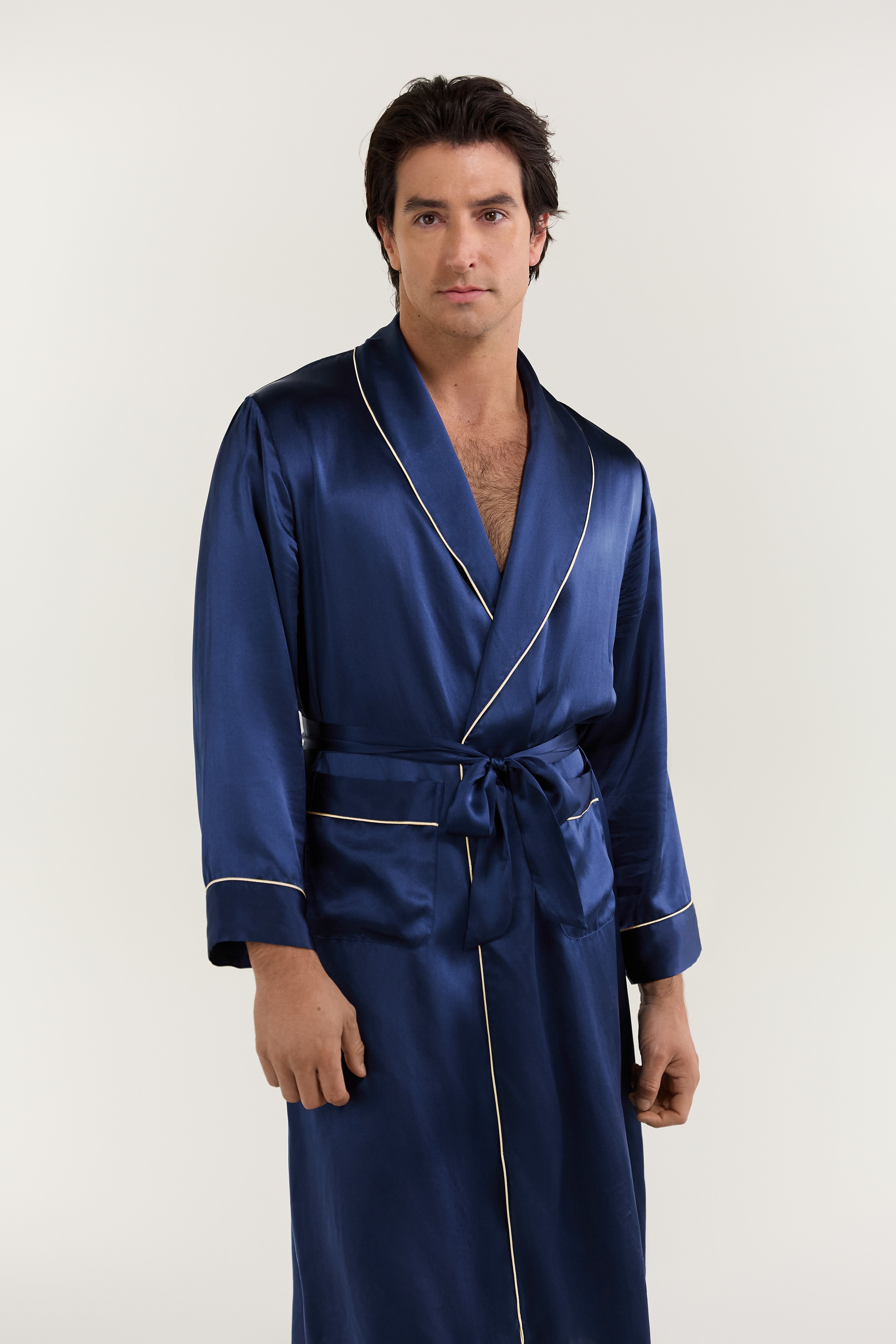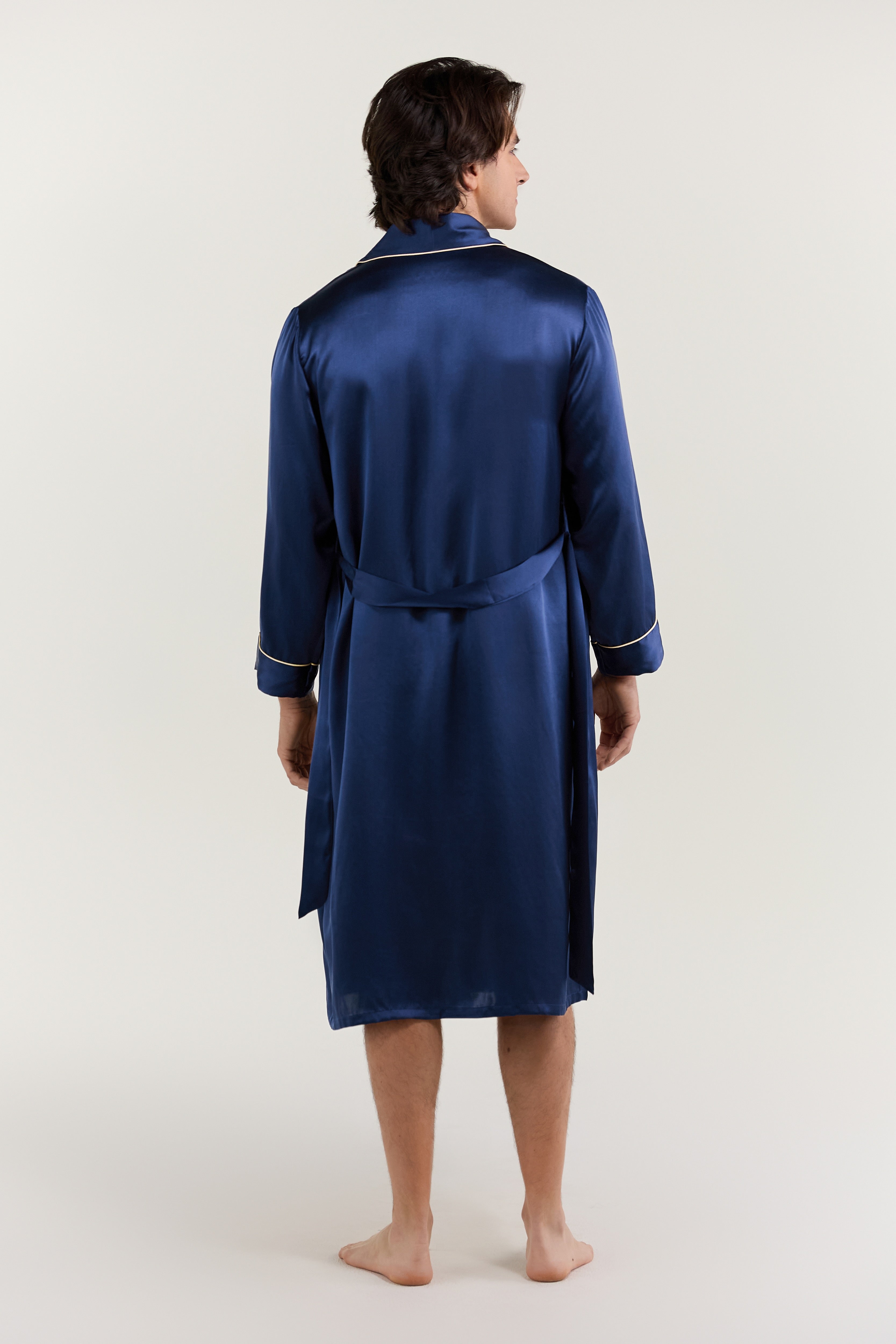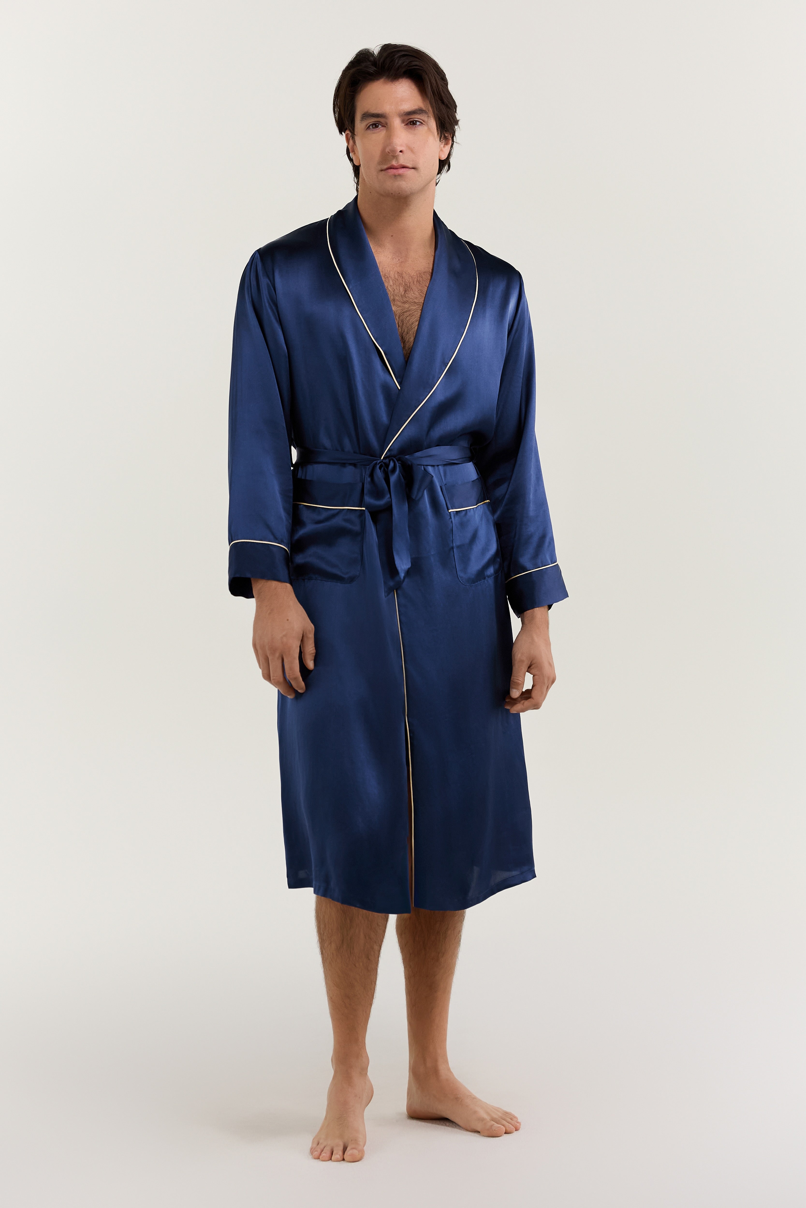 Wrap yourself in comfort with the JasmiSilk Men’s Silk Robe. Crafted from breathable Mulberry silk, this robe features a relaxed fit that’s both comfortable and practical. With a tie belt and cropped sleeves, it offers a laid-back feel while keeping you cozy throughout the day or night.