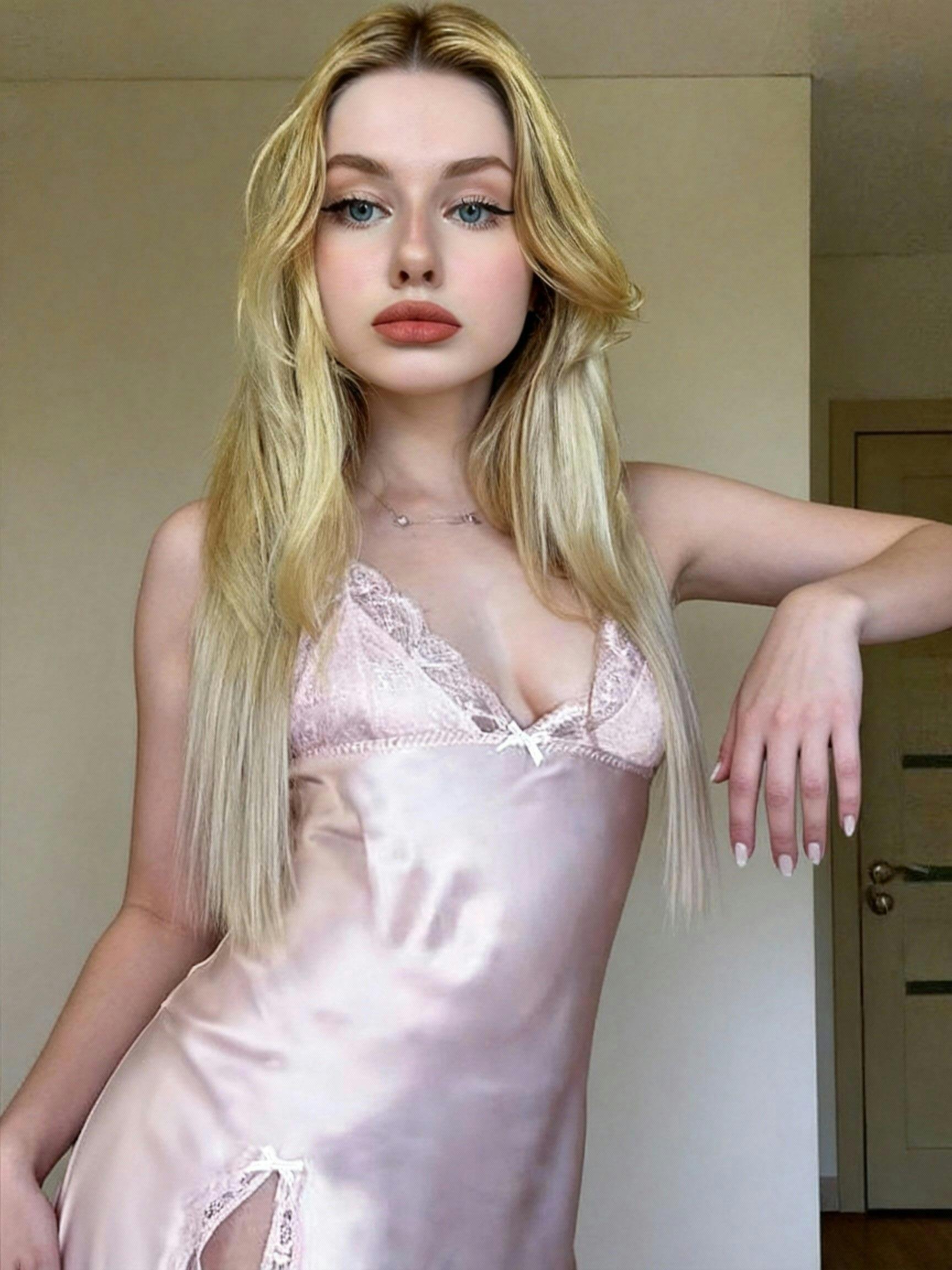 Silk Lace Mini Slip Nightgown – Pale Pink
