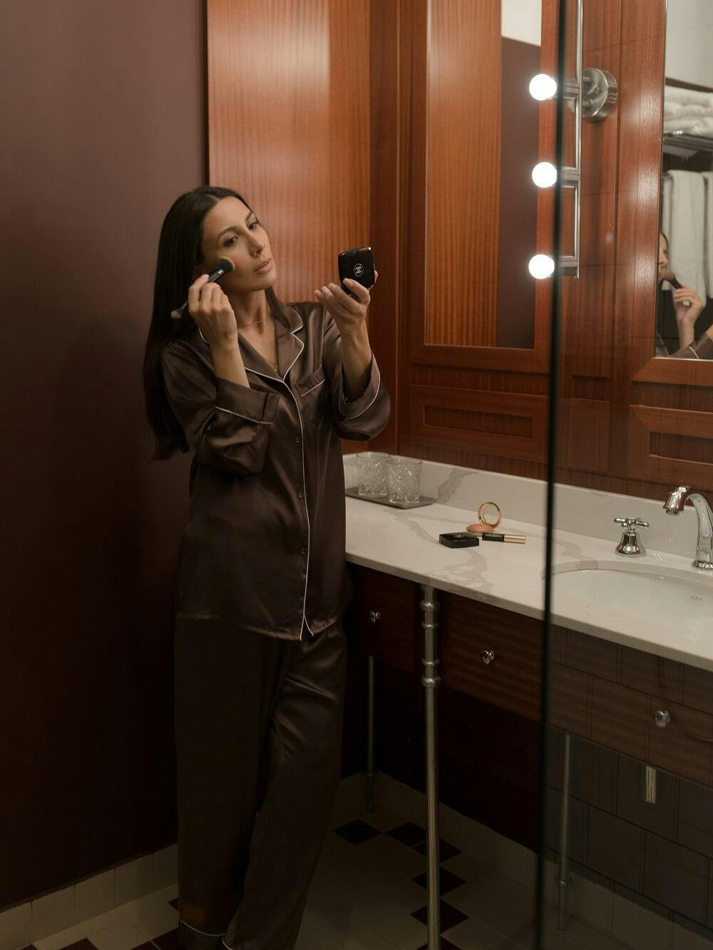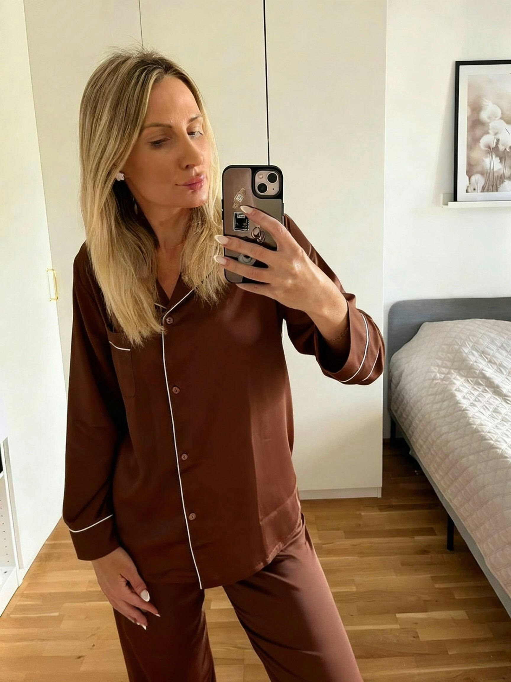 Women’s Long-Sleeve & Pants Silk Pajama In Coffee