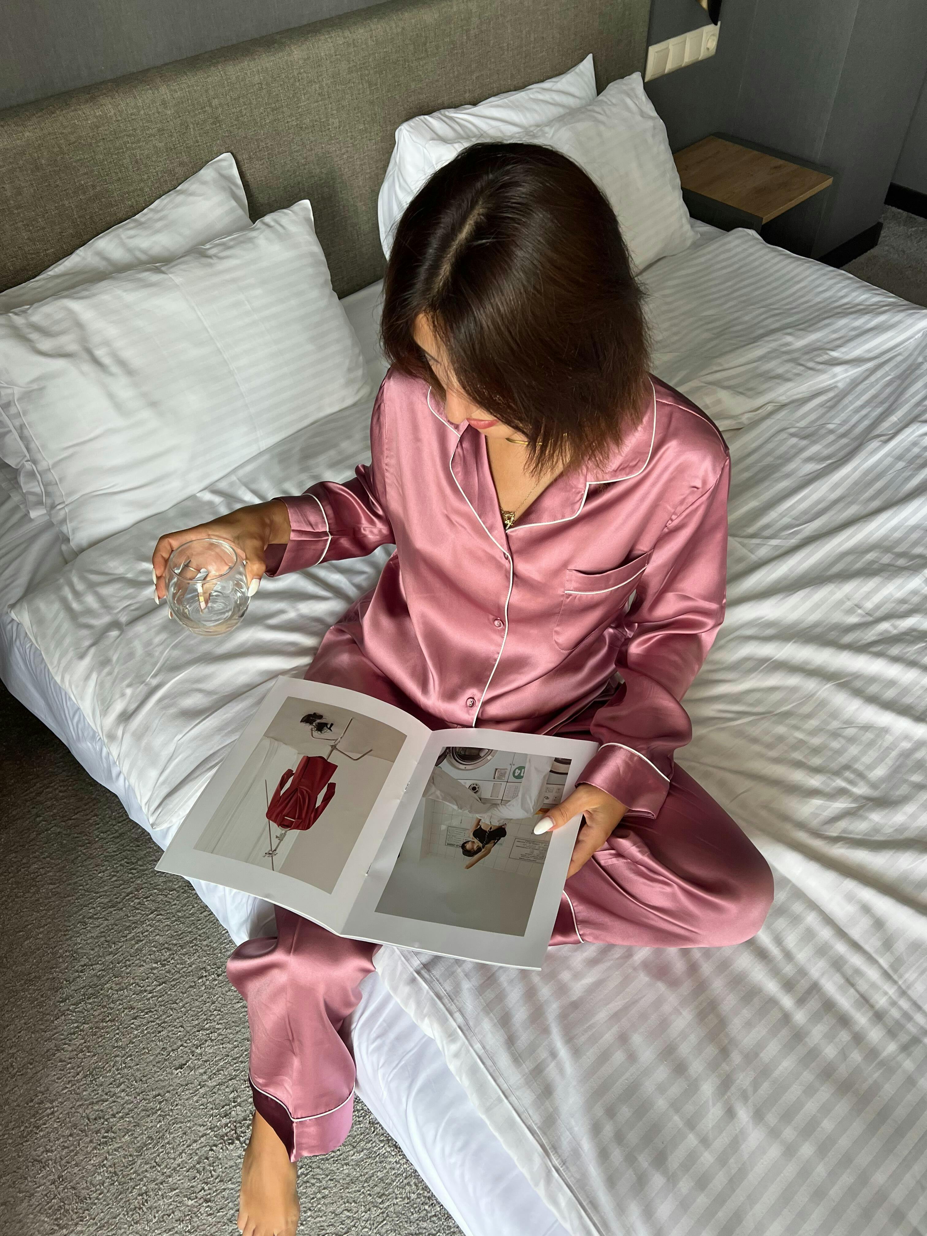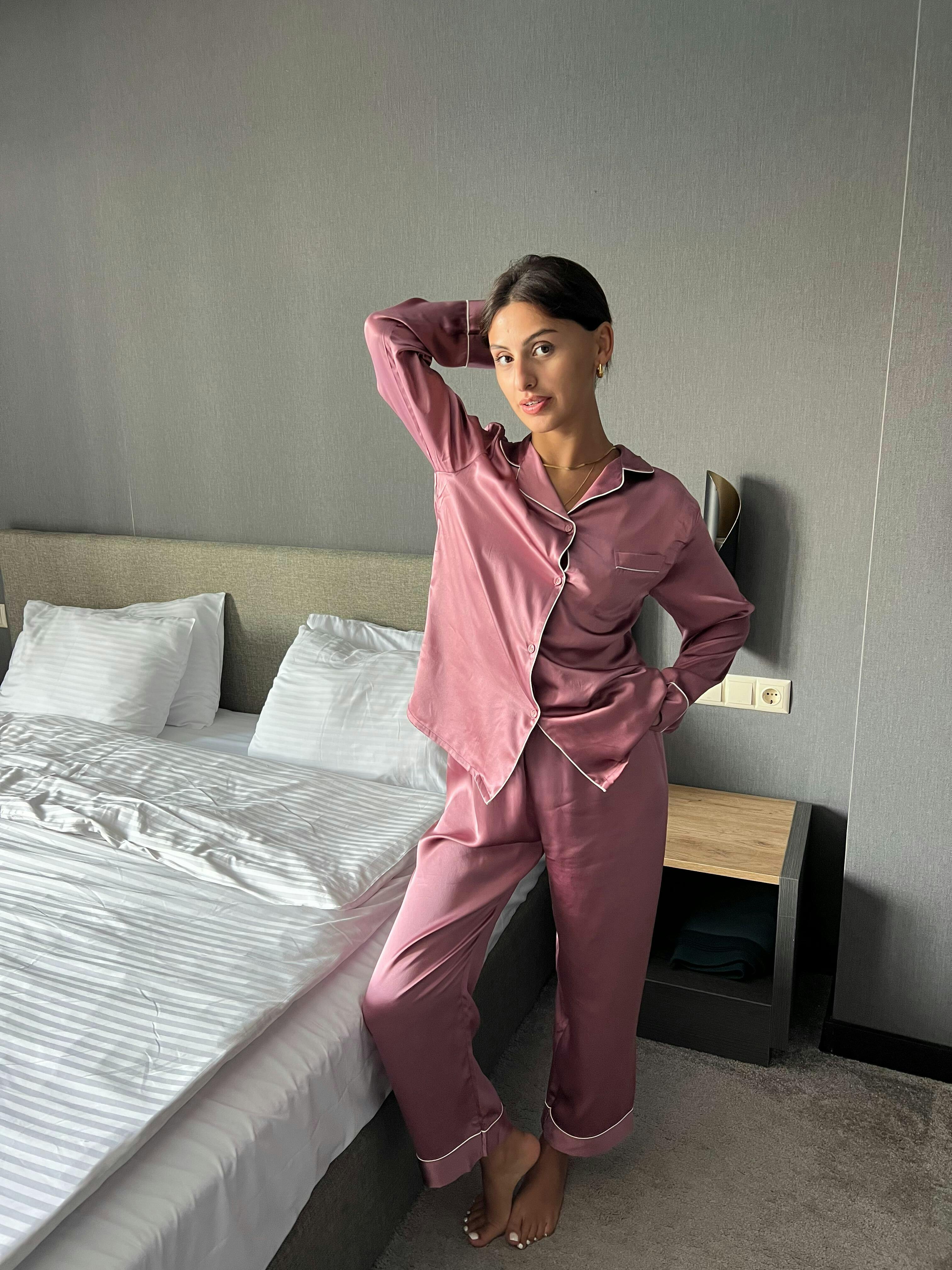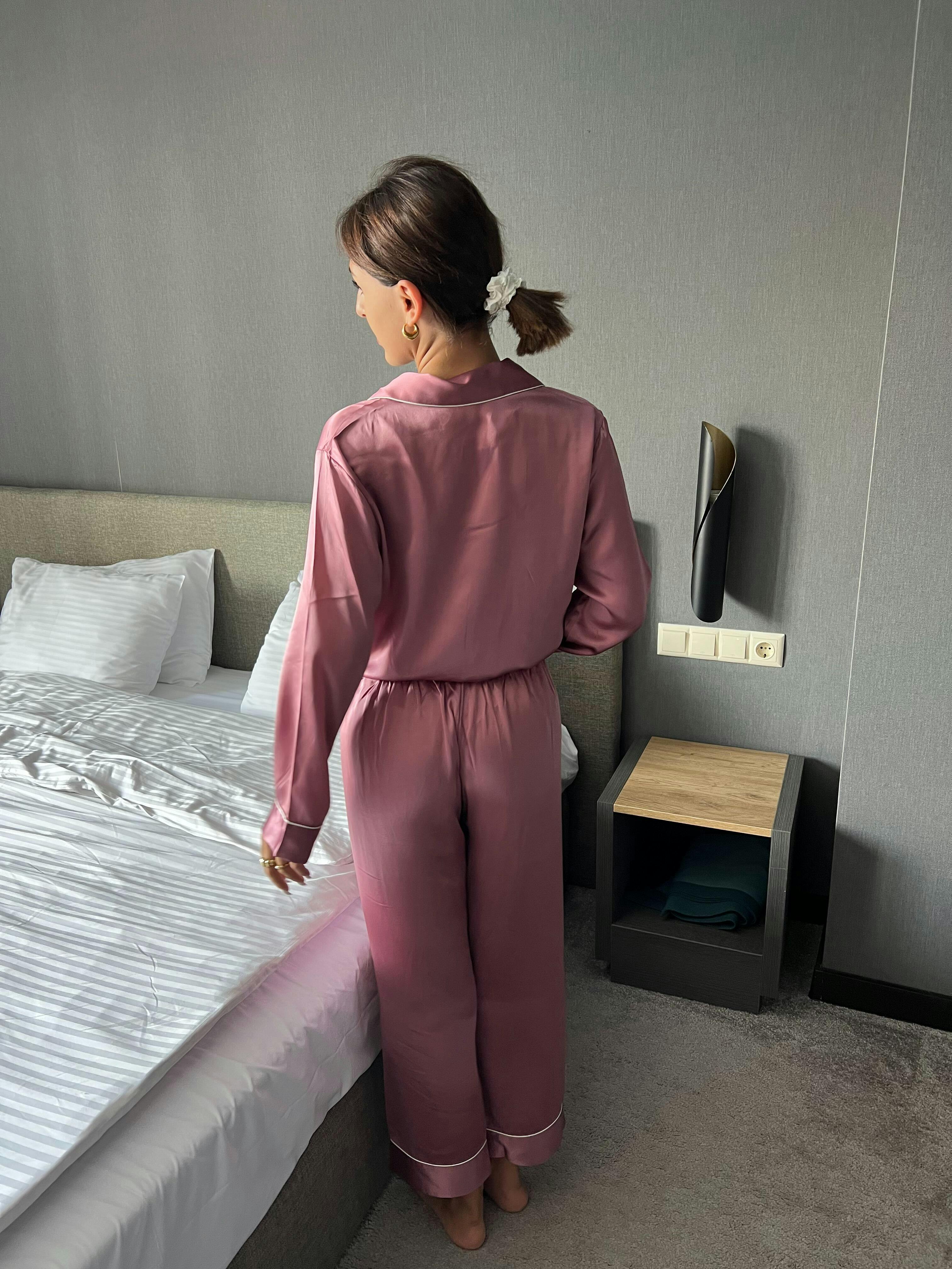 fake-image Women’s Long-Sleeve & Pants Silk Pajama In Dusty Rose – Jasmisilk