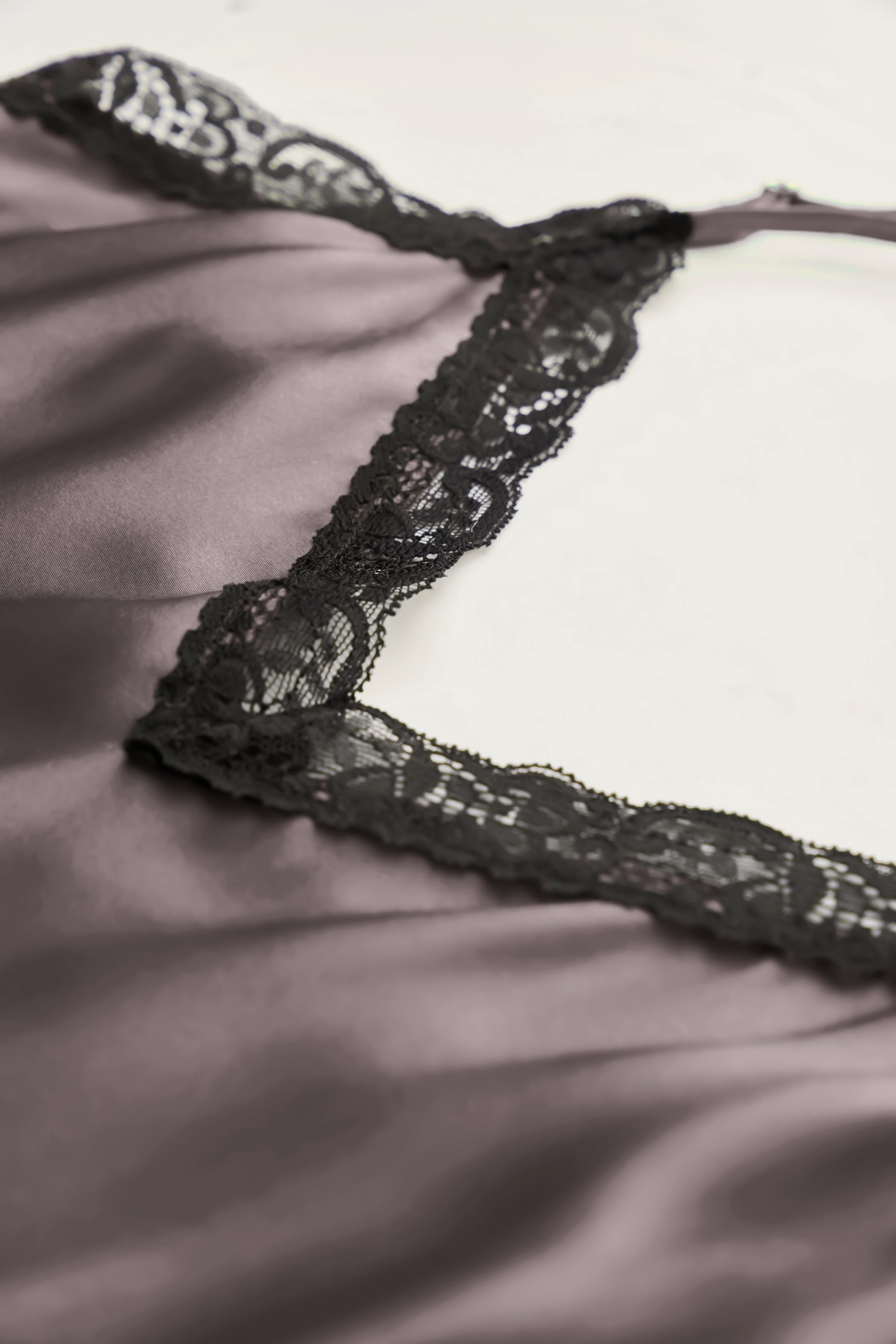 fake-image Pure Silk Lace Trim Chemise Nightgown with Split Hem In Quartz Purple – Jasmisilk