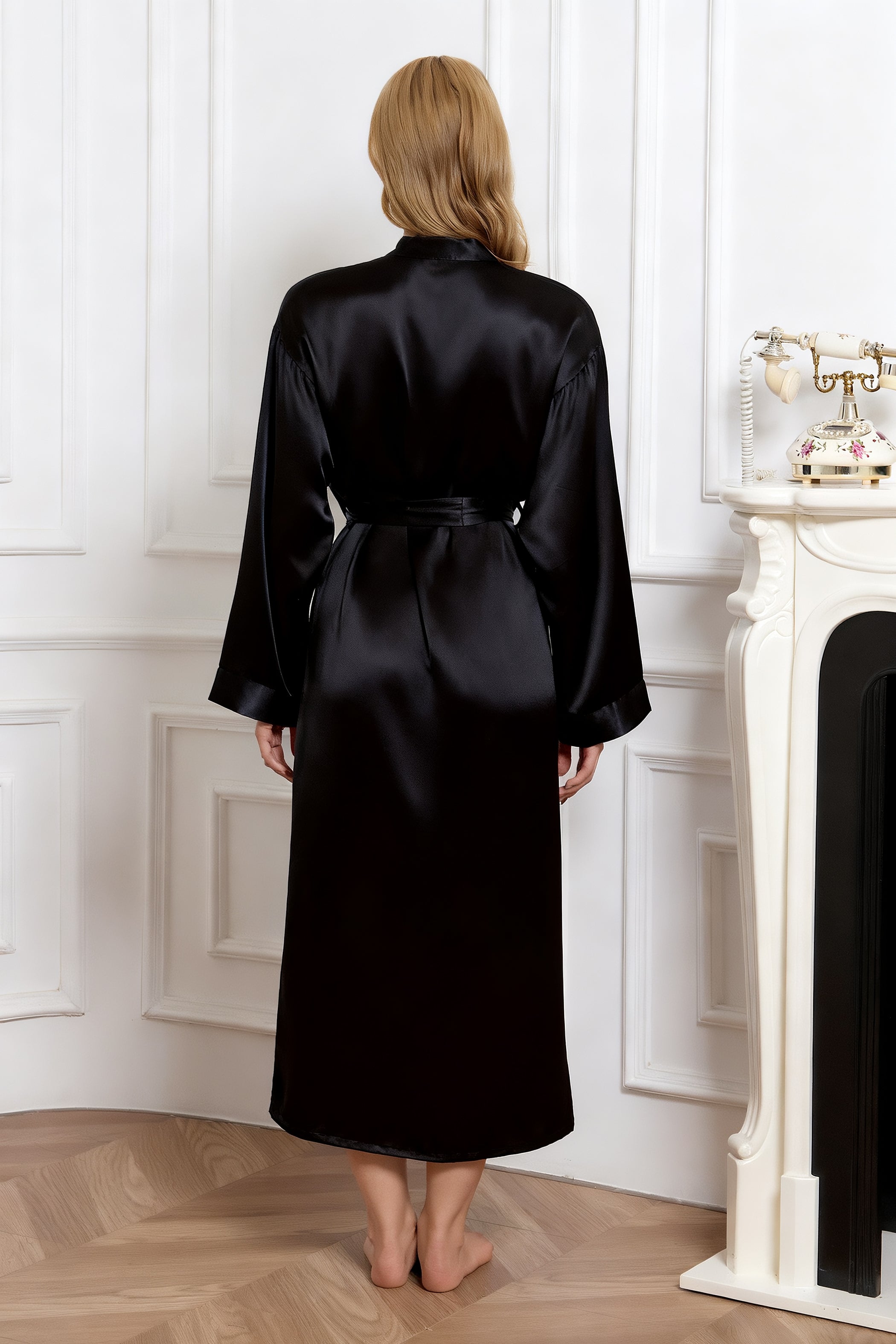 Crafted from 100% Grade 6A Mulberry Silk, this long robe drapes with a lustrous flow while feeling soft, breathable, and feather-light against the skin. Inspired by the elegance of traditional kimono silhouettes, it balances timeless style with everyday comfort.