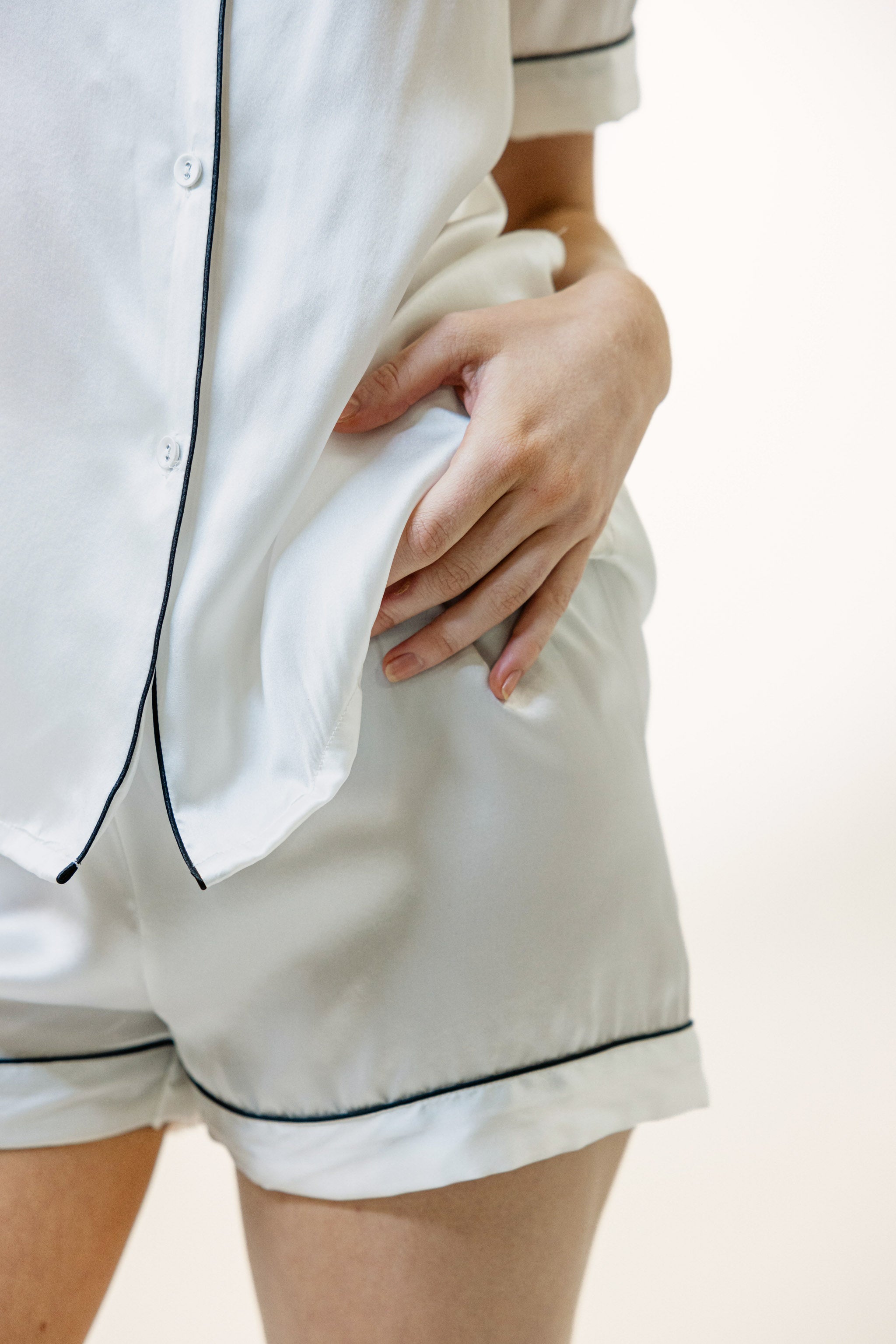 Women’s Short-Sleeve & Shorts Silk Pajama Set In White