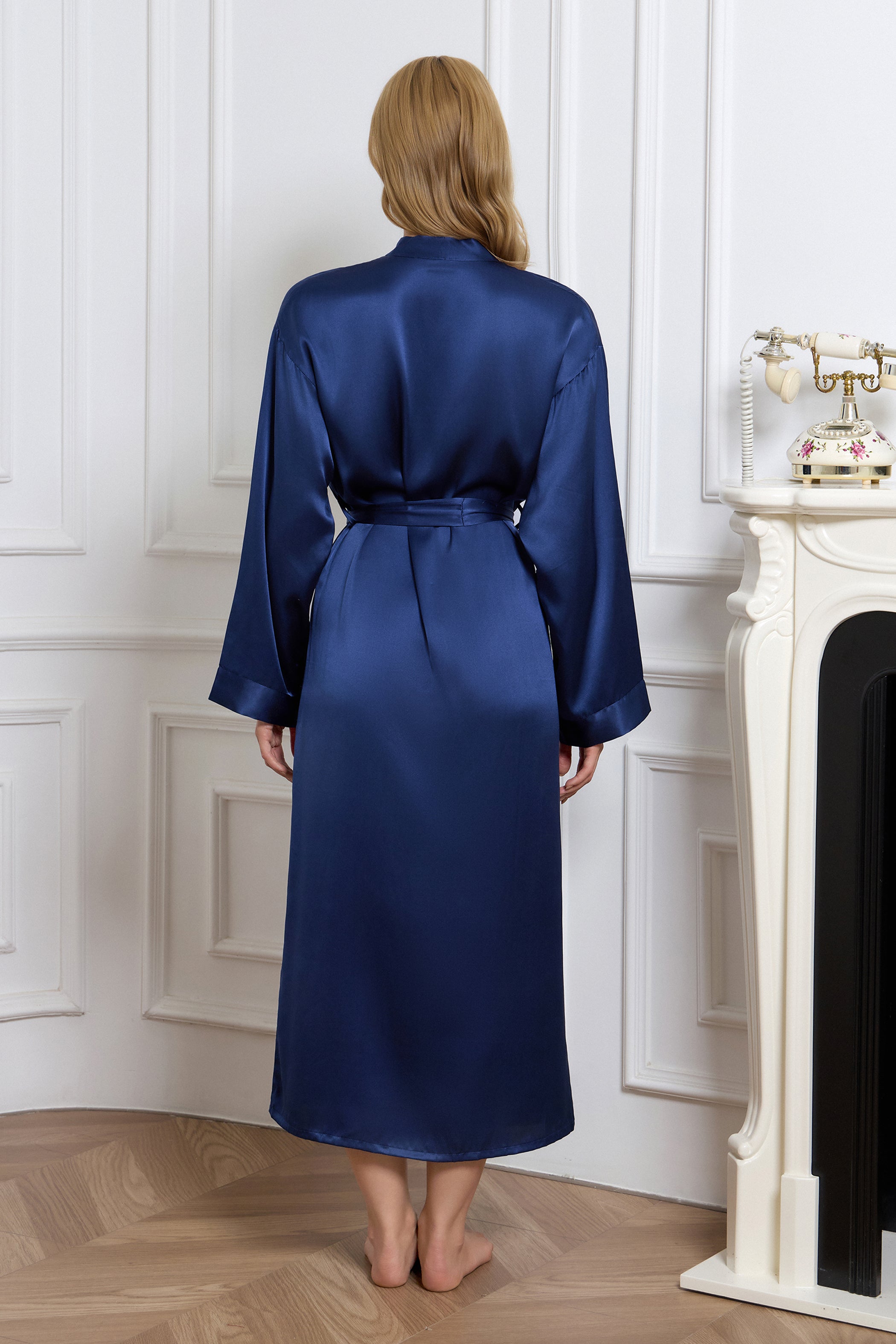 Long Silk Robe – Navy Dressing Gown