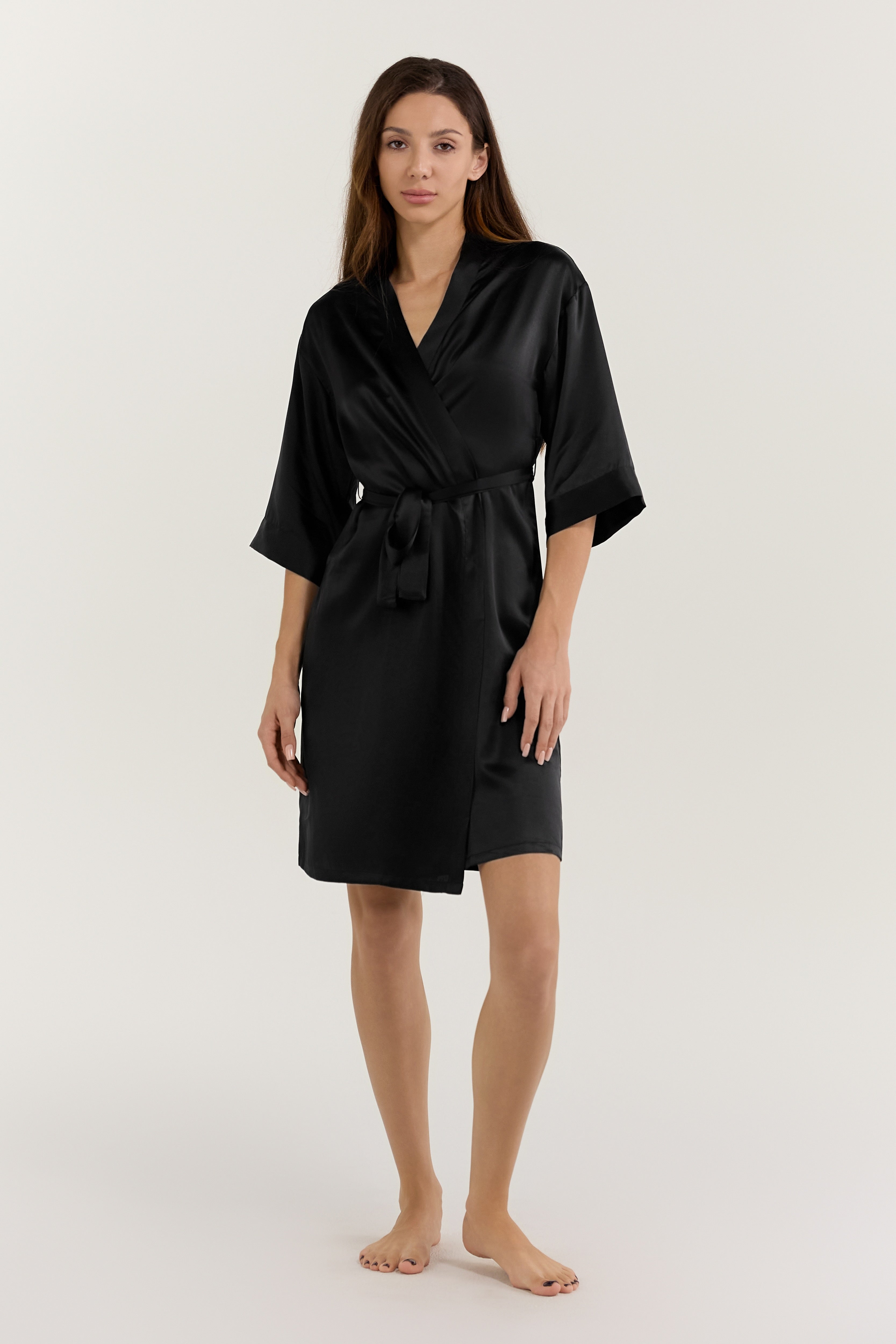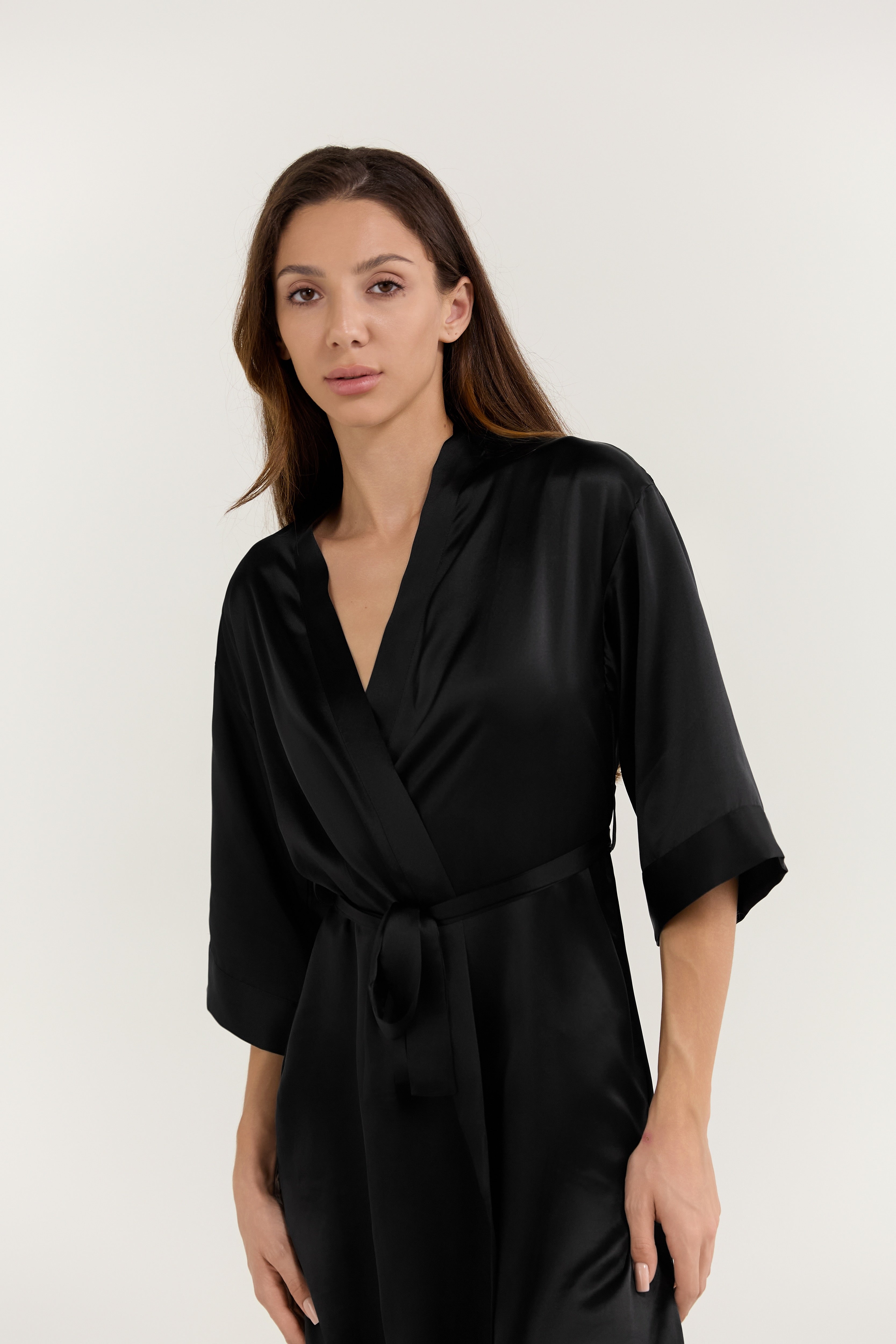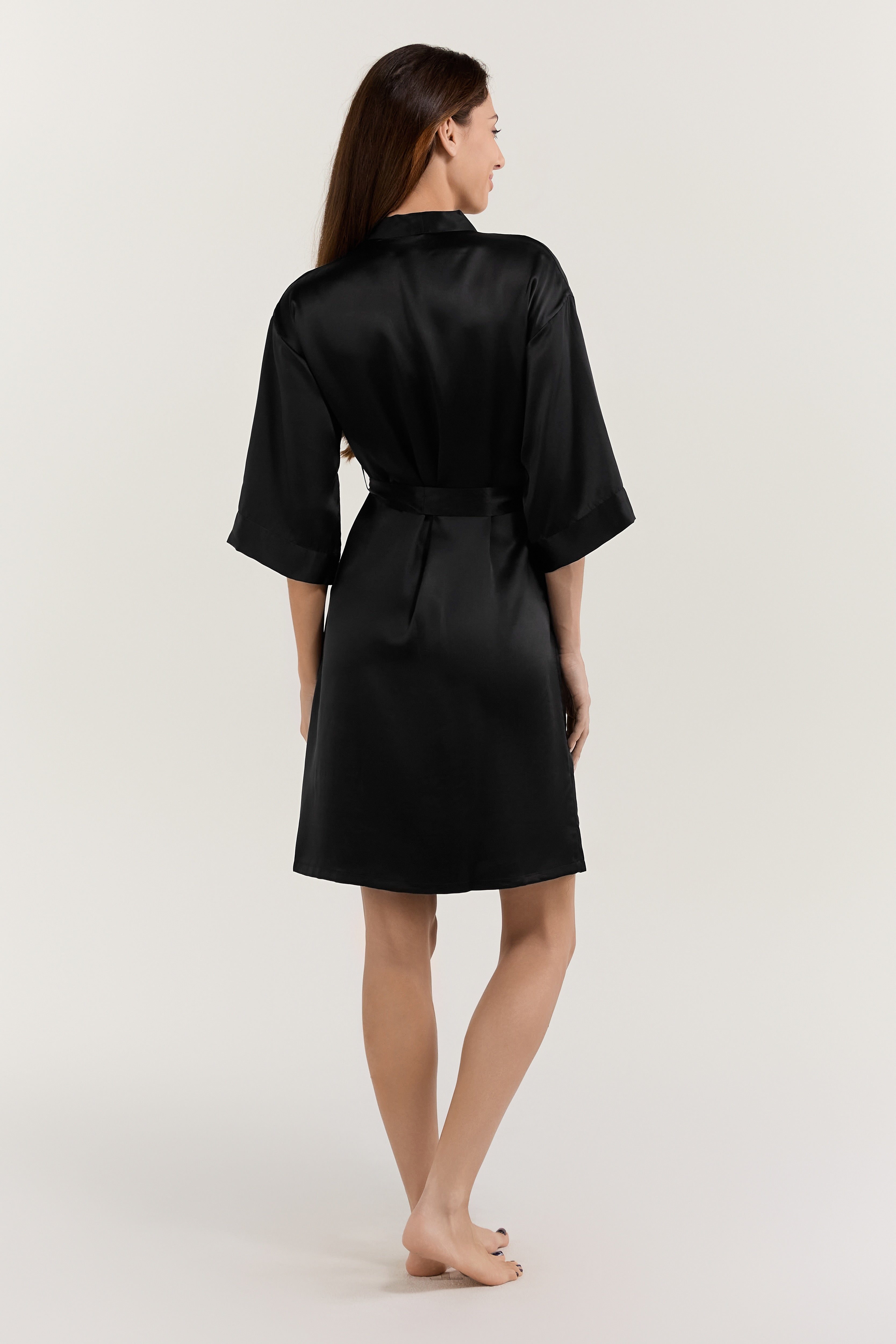 fake-image Women’s Pure Silk Mid-Length Robe In Black – Jasmisilk