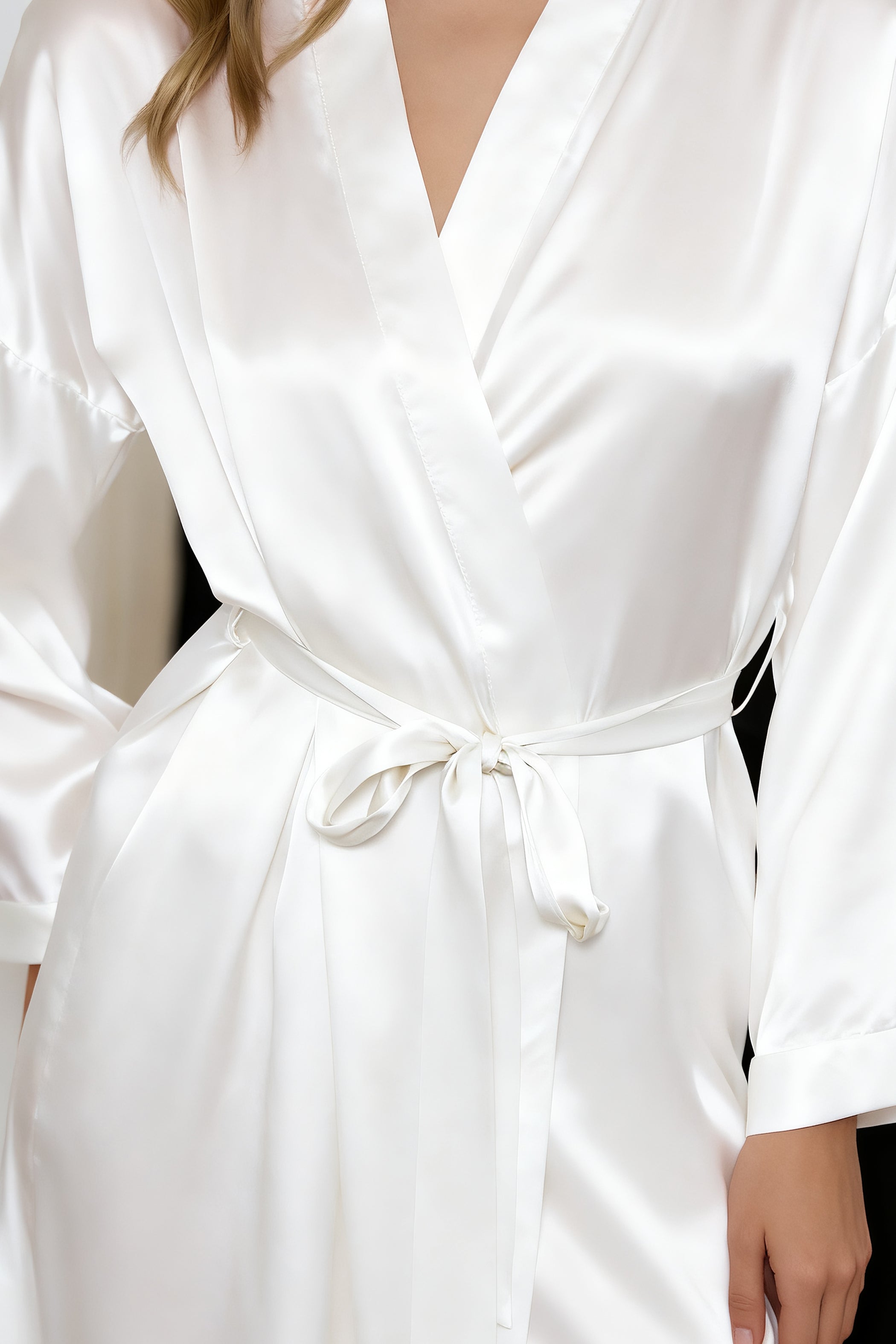 Der mittellange Seidenmantel von JasmiSilk ist auf Komfort ausgelegt und besteht aus leichter, atmungsaktiver Maulbeerseide, die sich unglaublich weich auf der Haut anfühlt. Mit schlichtem Schalkragen, verstellbarem Gürtel und Fronttaschen bietet dieser Morgenmantel eine entspannte, gemütliche Passform zum Entspannen zu Hause.