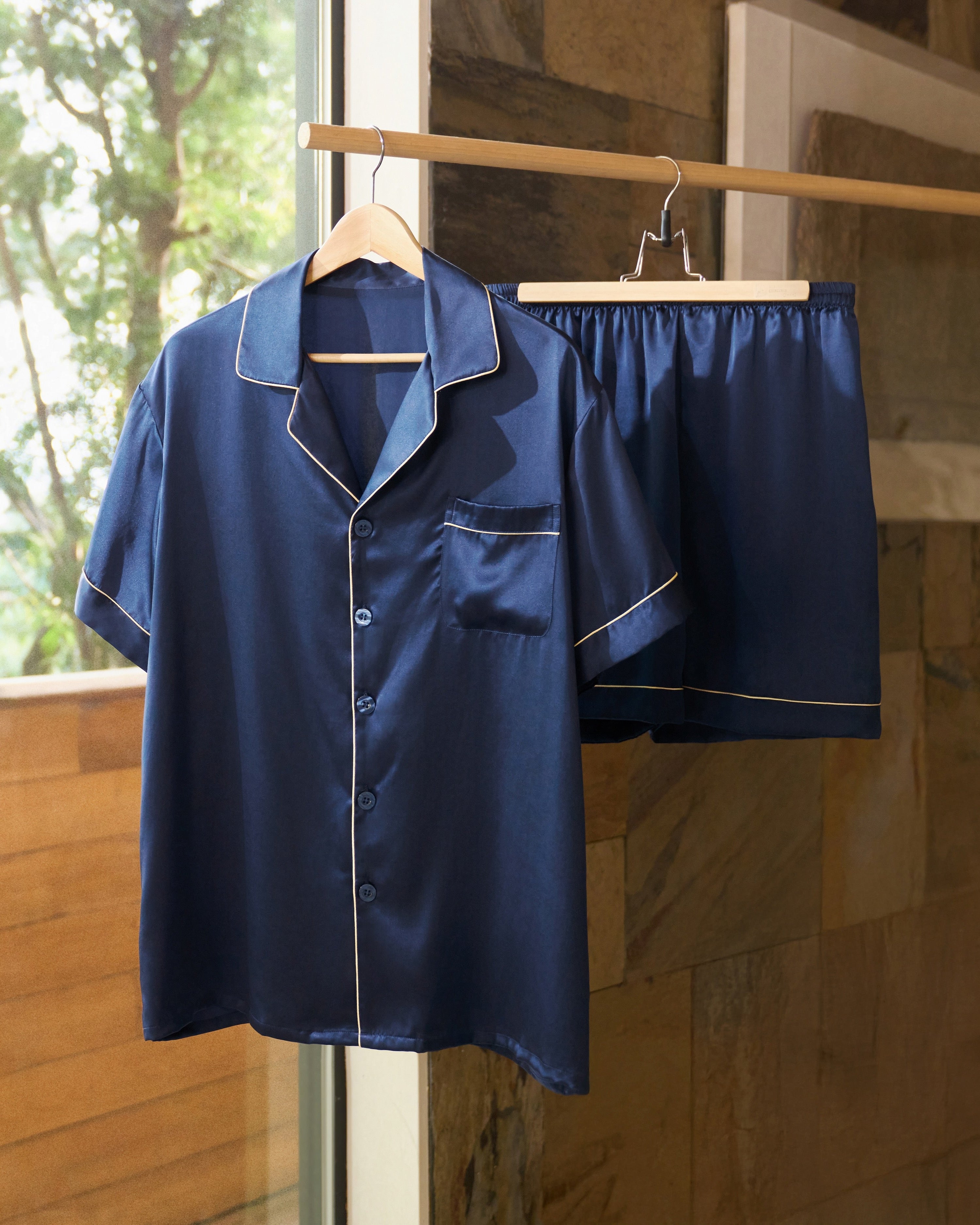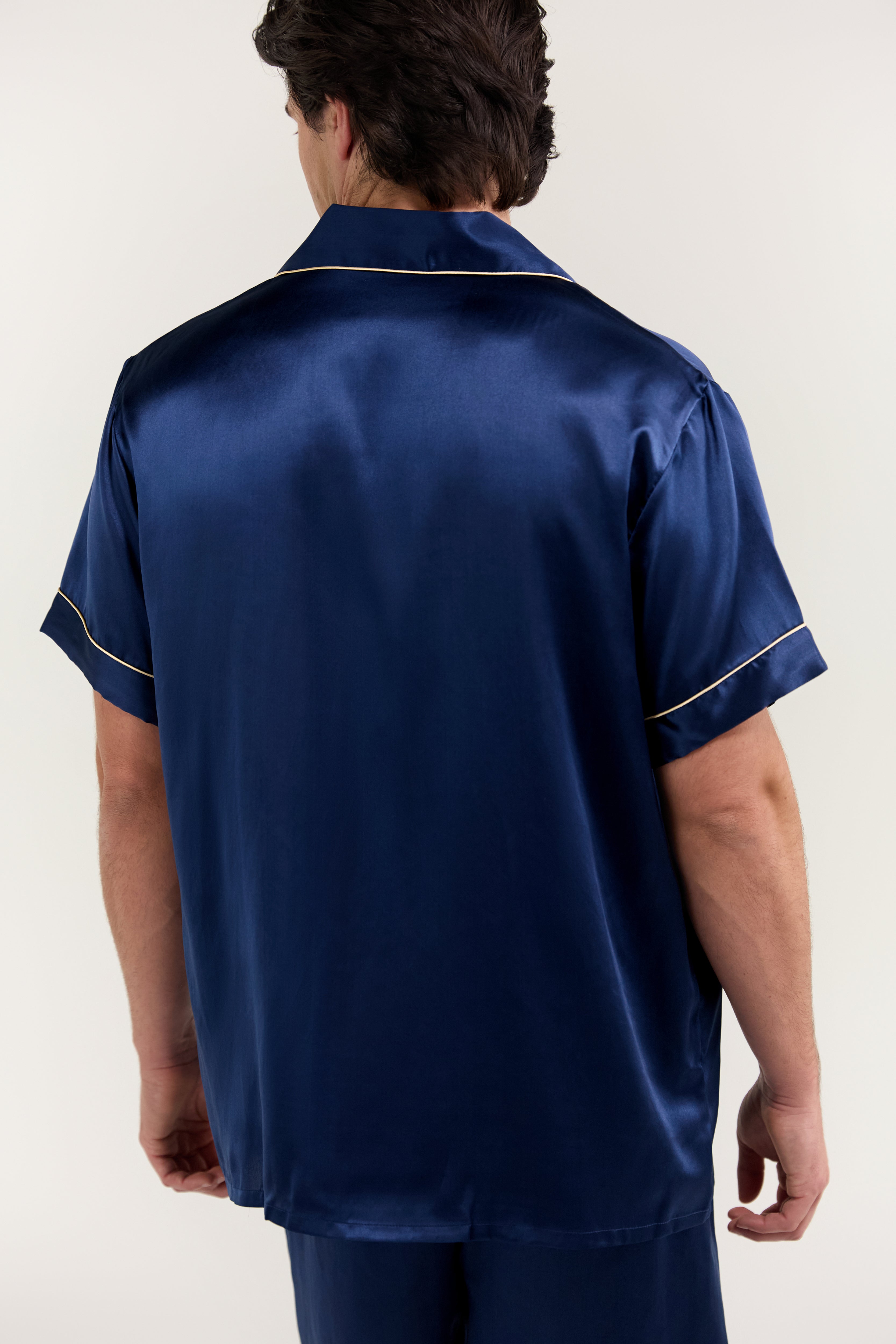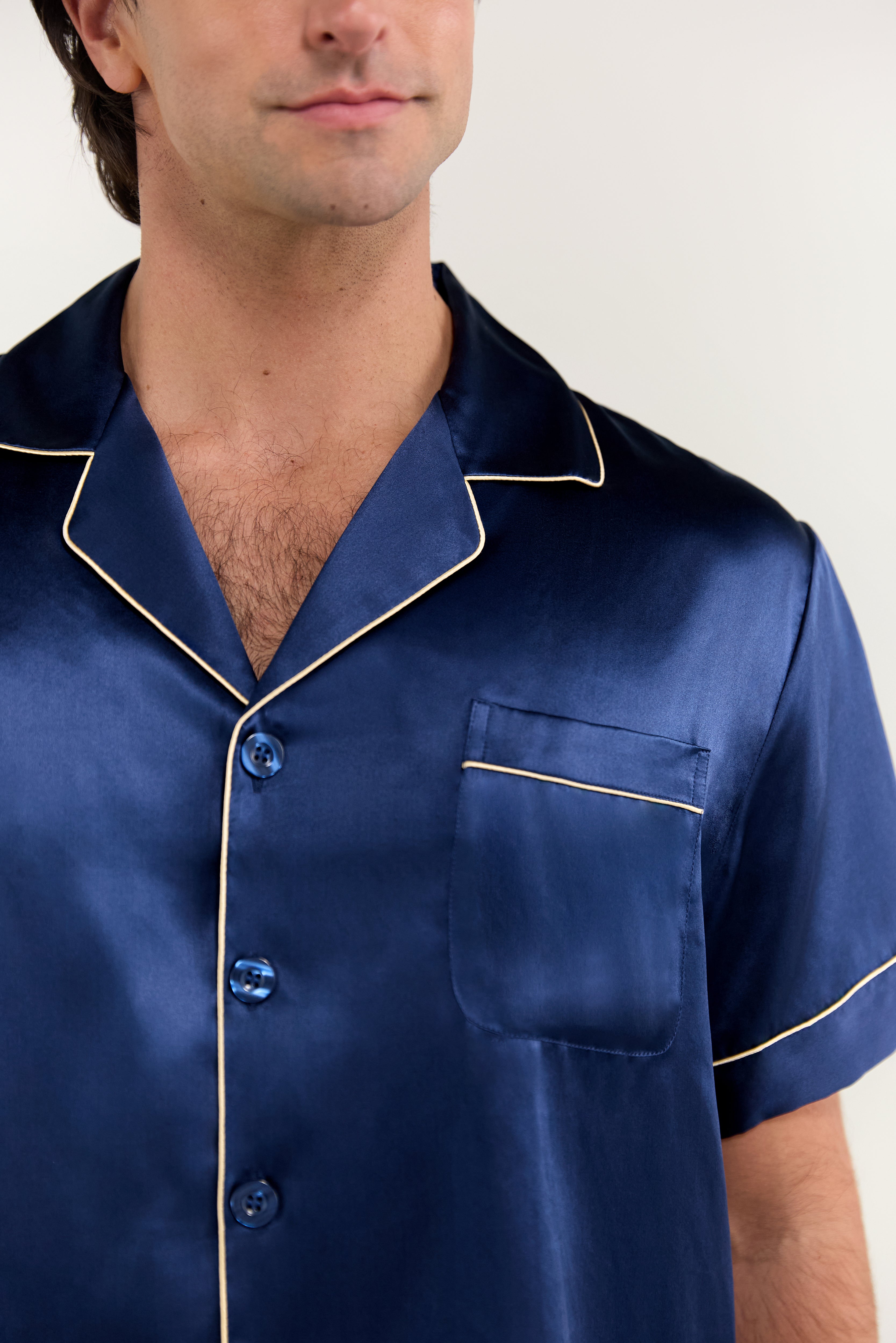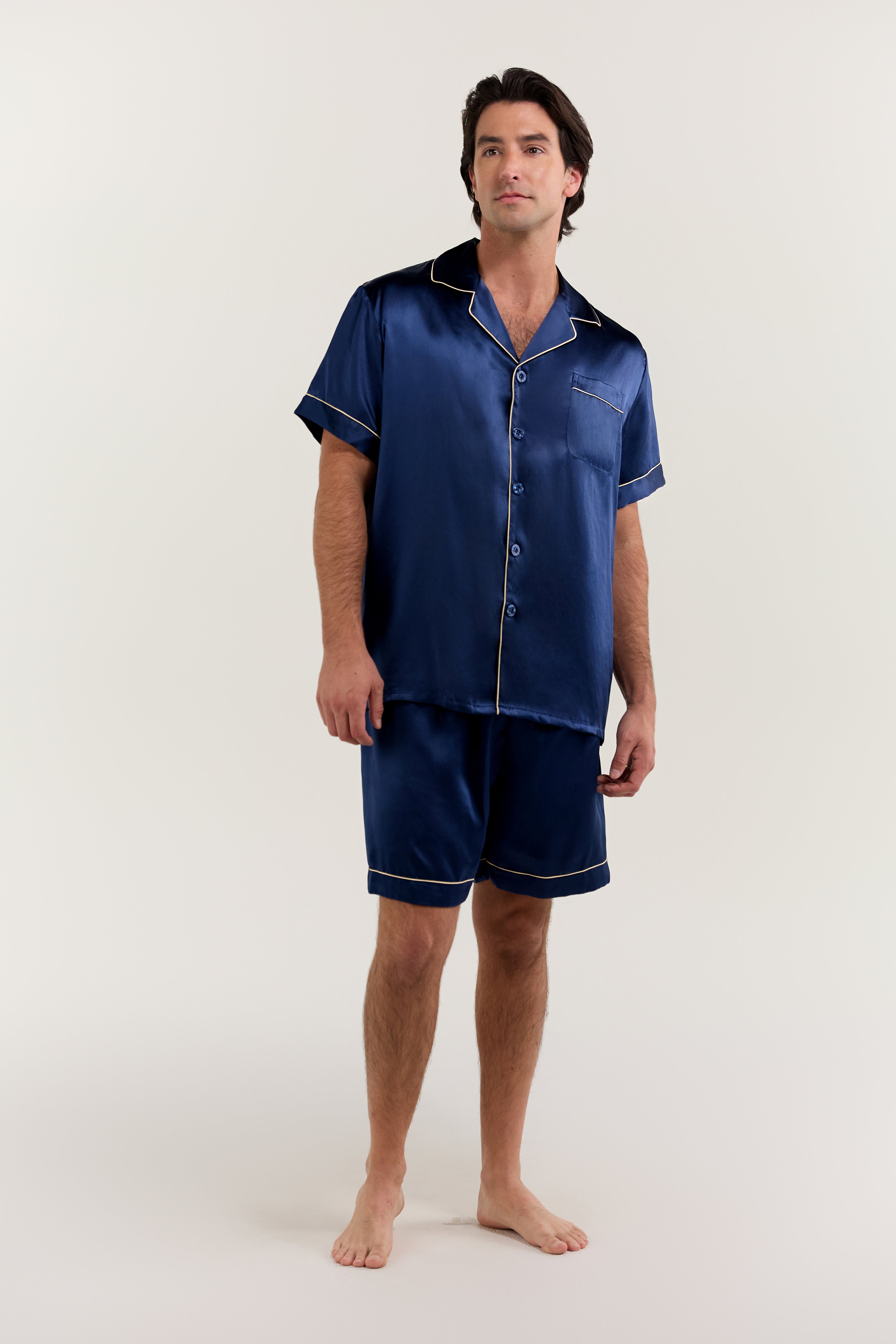 fake-image Men’s Classic Short Silk Pajama Set In Navy Blue – Jasmisilk