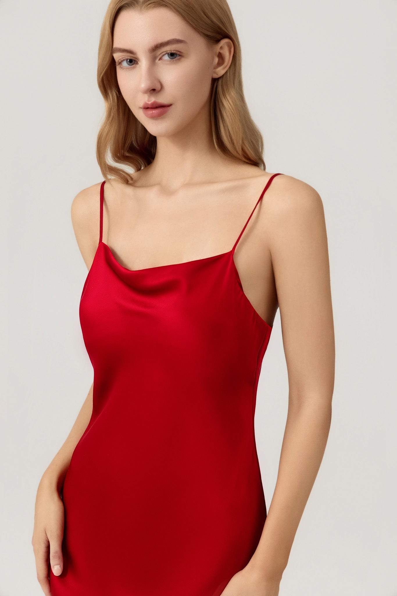 The Pure Silk Cowl Neck Slip Dress with Spaghetti Straps is the perfect blend of understated luxury and effortless style. Made from 100% Mulberry silk, this dress drapes beautifully over your body, offering a soft, luxurious feel against your skin. Its cowl neck and spaghetti straps give it a timeless elegance, making it easy to wear for any occasion. Available in a variety of colors, this slip dress is versatile enough to complement your mood, whether you're lounging at home or dressing up for a night out.