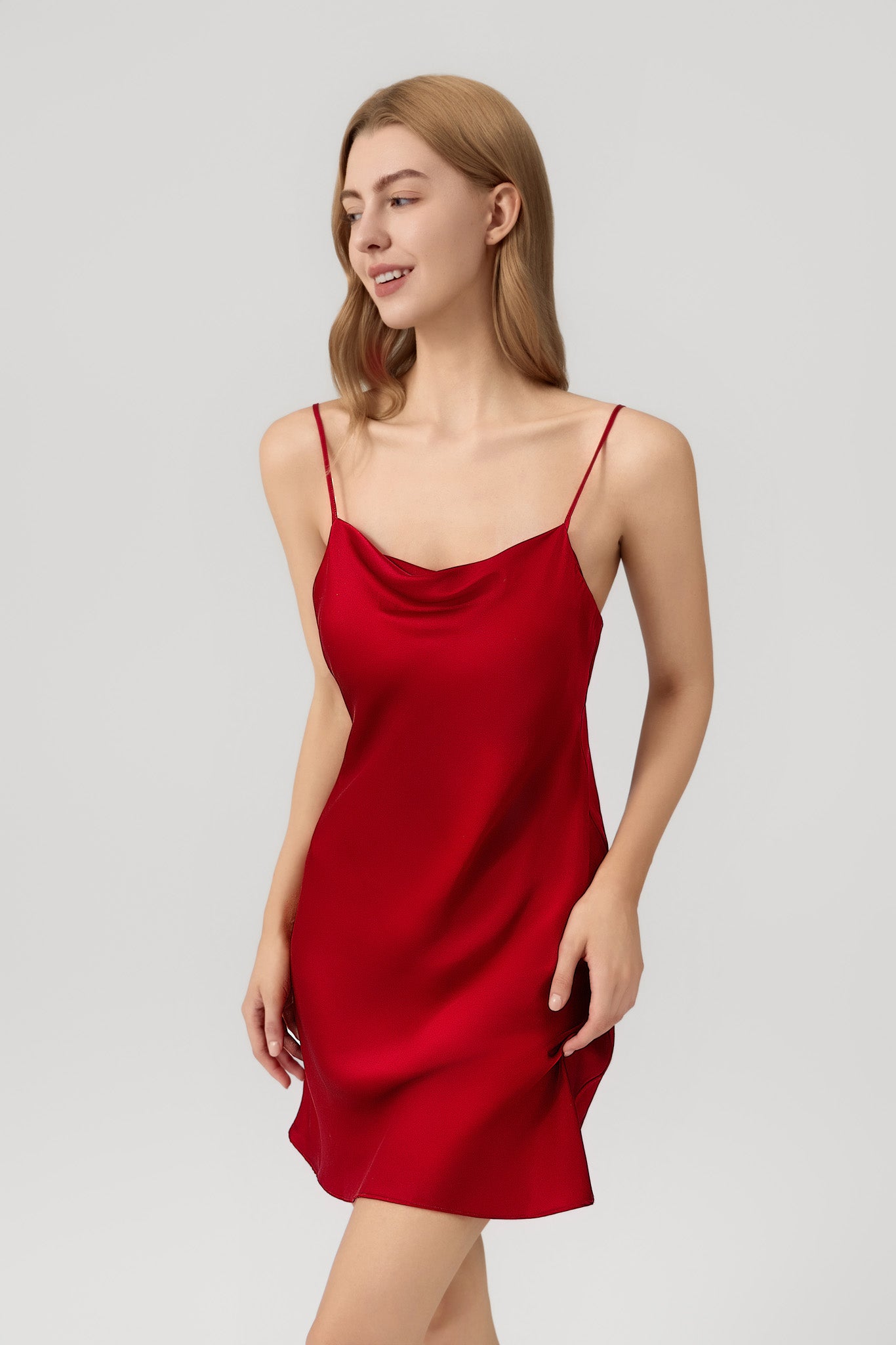 fake-image Relaxed Fit Silk Cowl Neck Nightgown In Burgundy Red – Jasmisilk