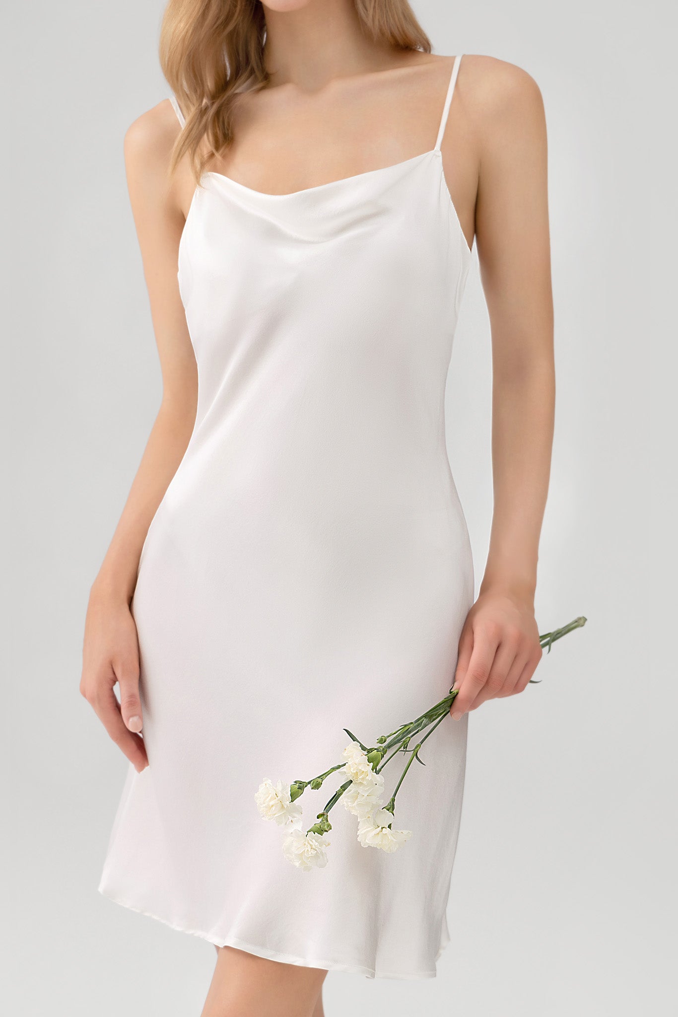fake-image Relaxed Fit Silk Cowl Neck Nightgown In White – Jasmisilk