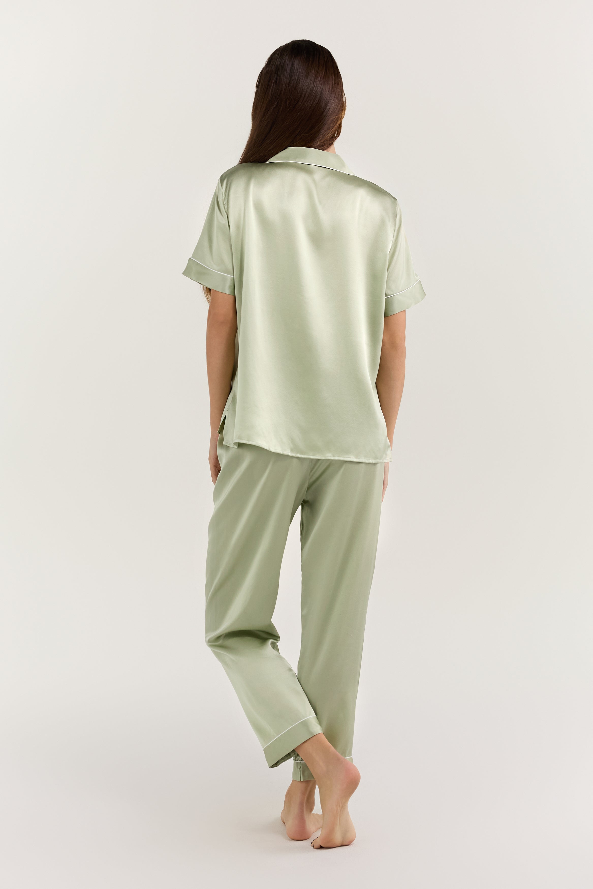 fake-image Women's Pure Silk Pajama Set - Short Sleeve Top & Pants In Avocado – Jasmisilk