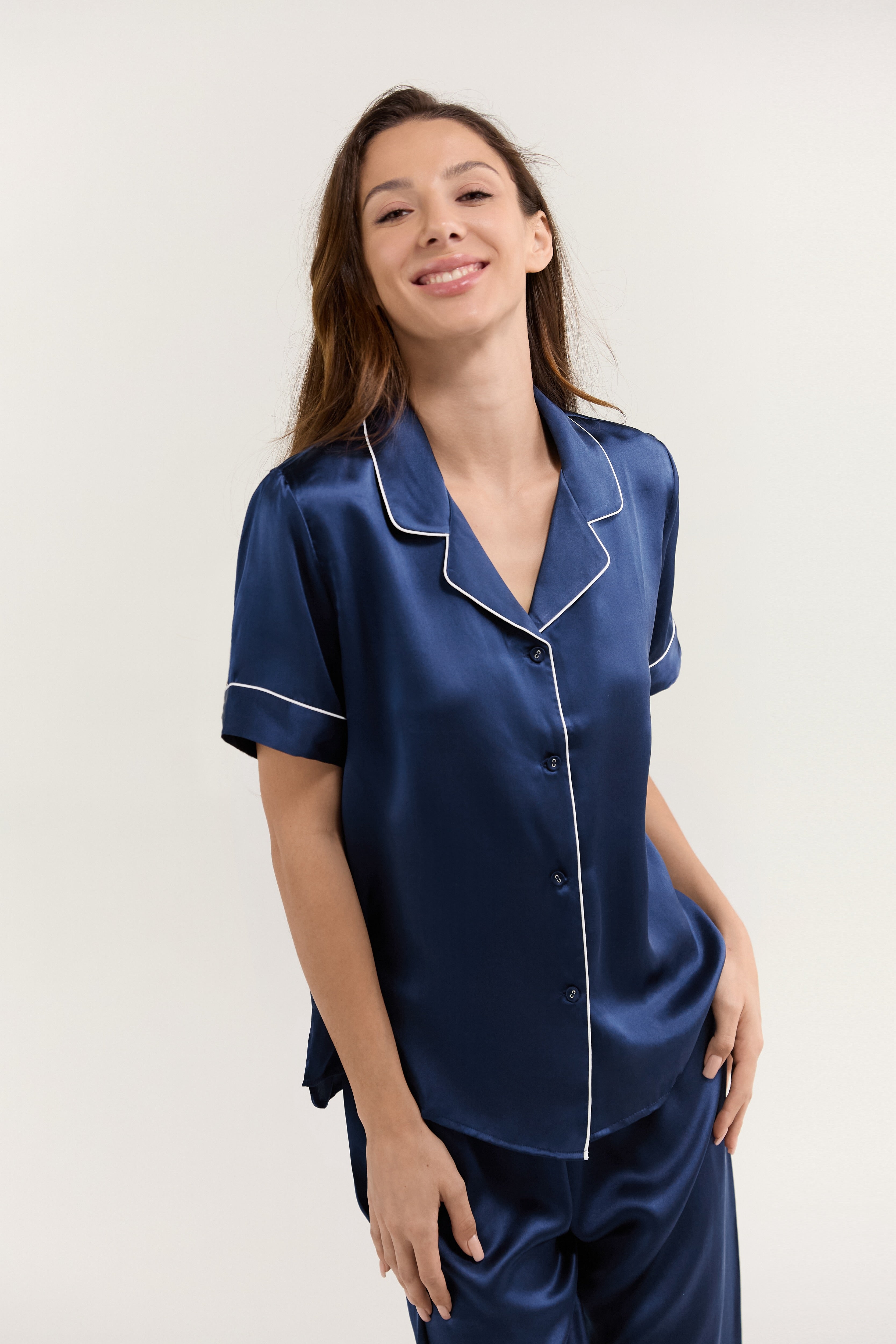 The JasmiSilk Silk Pajama Set is crafted with your comfort in mind. Featuring a short-sleeve top and long pants, this set is made from soft Mulberry silk that feels luxurious and breathable, ensuring you stay relaxed throughout the night or day.